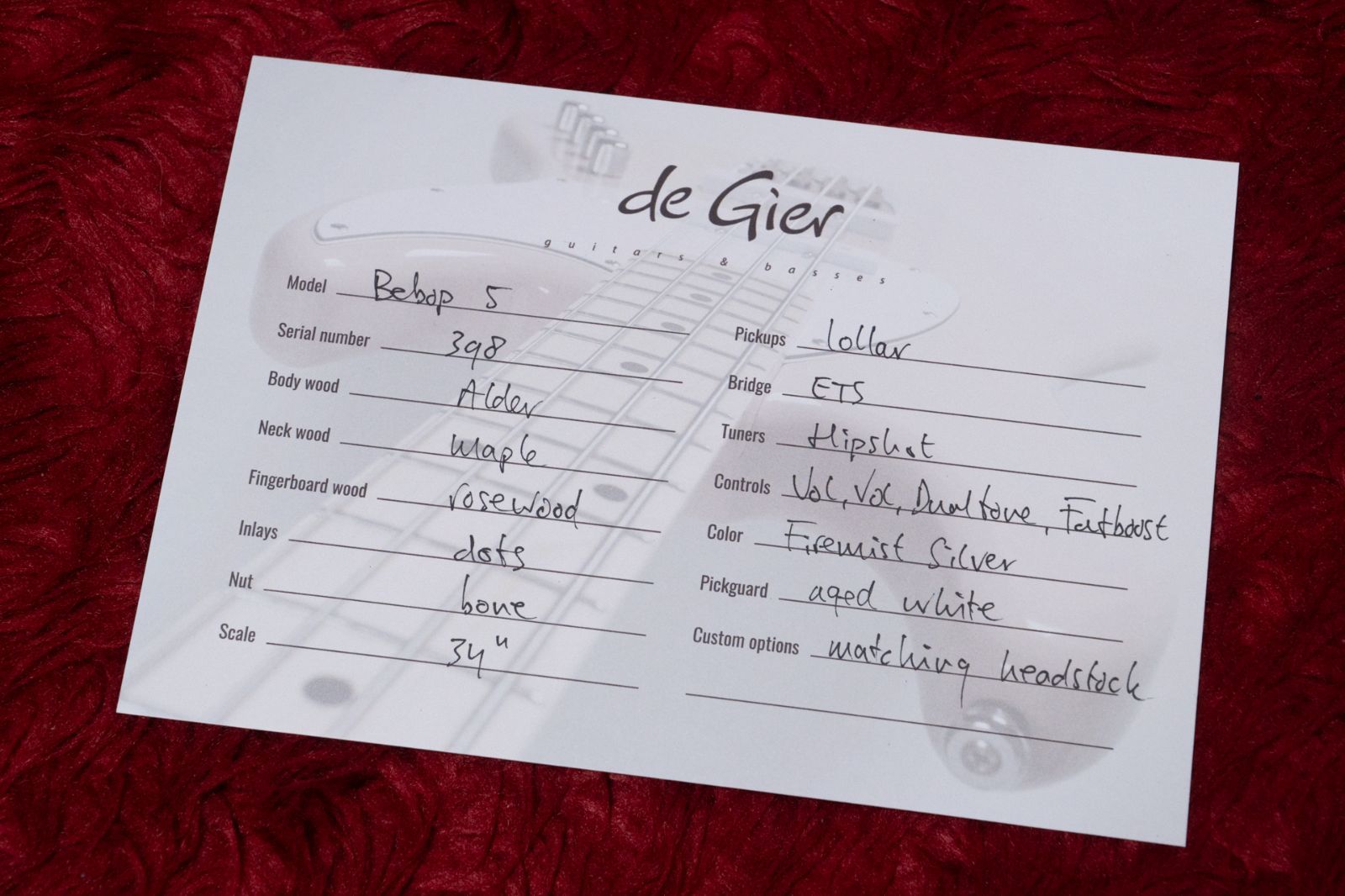De Gierは個体に合わせて様々なPUを使い分けますが、この個体にはLollarです。
