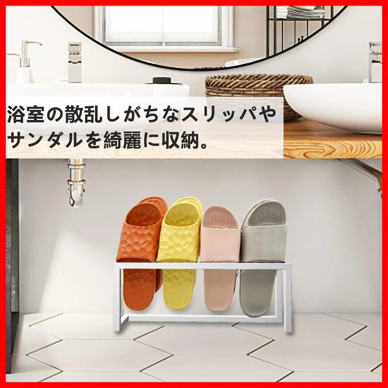 【使用範囲が広い】スリッパラックはトイレ、ベッドルーム、ホテルや浴室などに適用します。使用範囲が広い。上から差し込むように入れるだけの簡単設計。組立は不要です、完全品の状態に届きました。