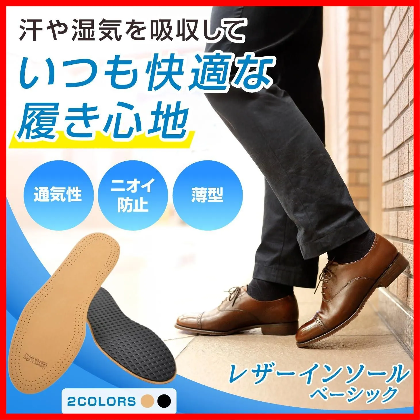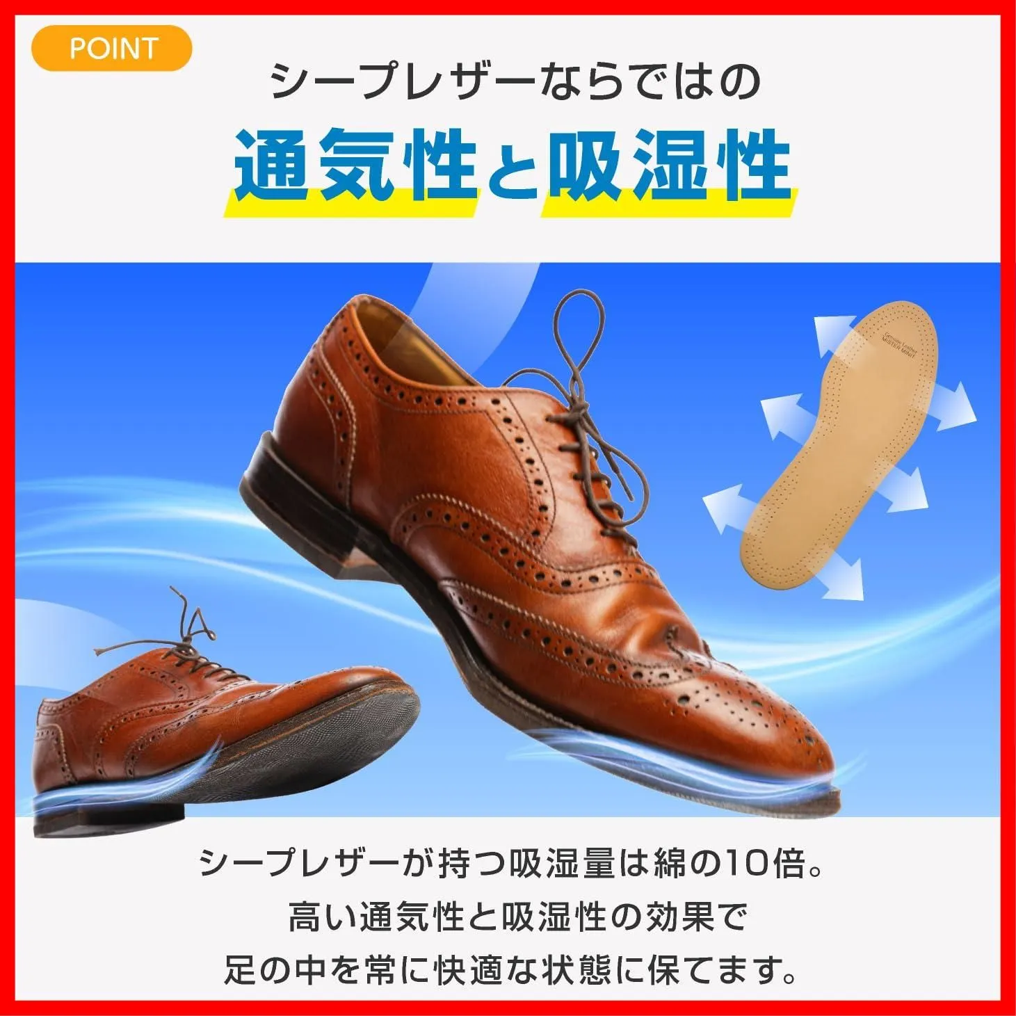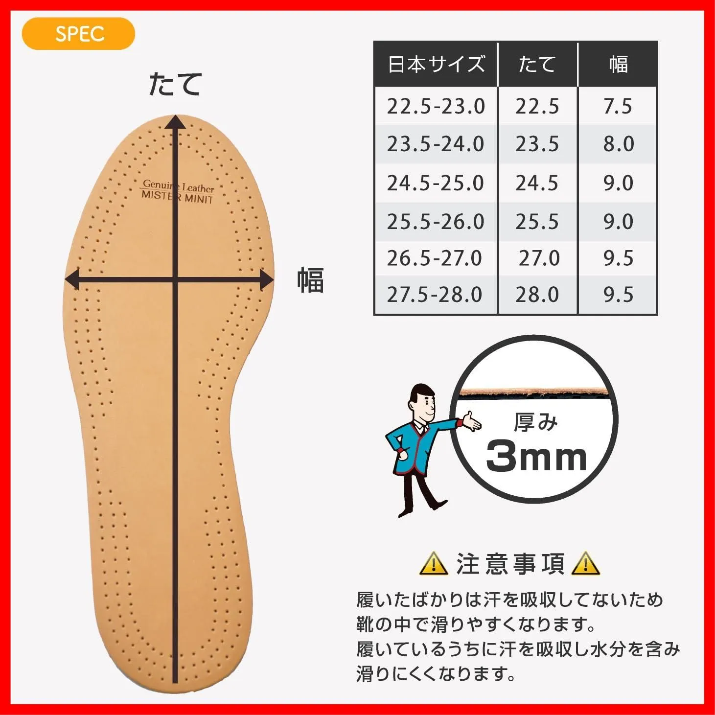[ミスターミニット] レザー インソール ベーシック 中敷き 革靴 薄型 ヌメ革 シープレザー サイズ調整 ムレ防止 消臭 吸湿性 足の臭い ビジネスシューズ ドレスシューズ メンズ レディース