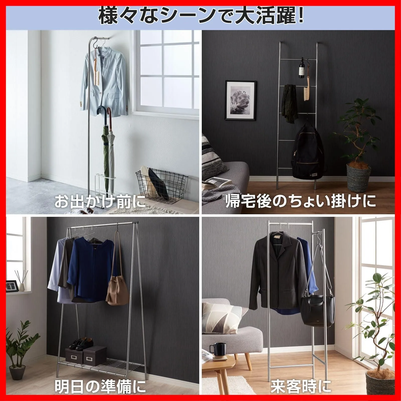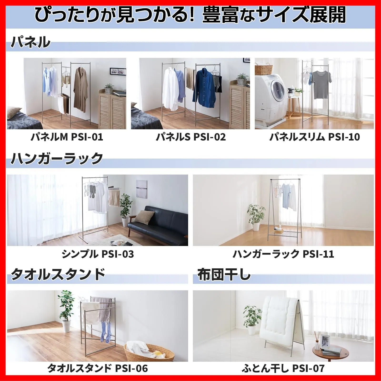 出しっぱなしでもスタイリッシュに決まるインテリア物干しシリーズ。フレームは軽くて丈夫な素材を使用し、コンパクトに折りたたむことで収納もスマートにできる、デザイン性の高いアイテムです。
