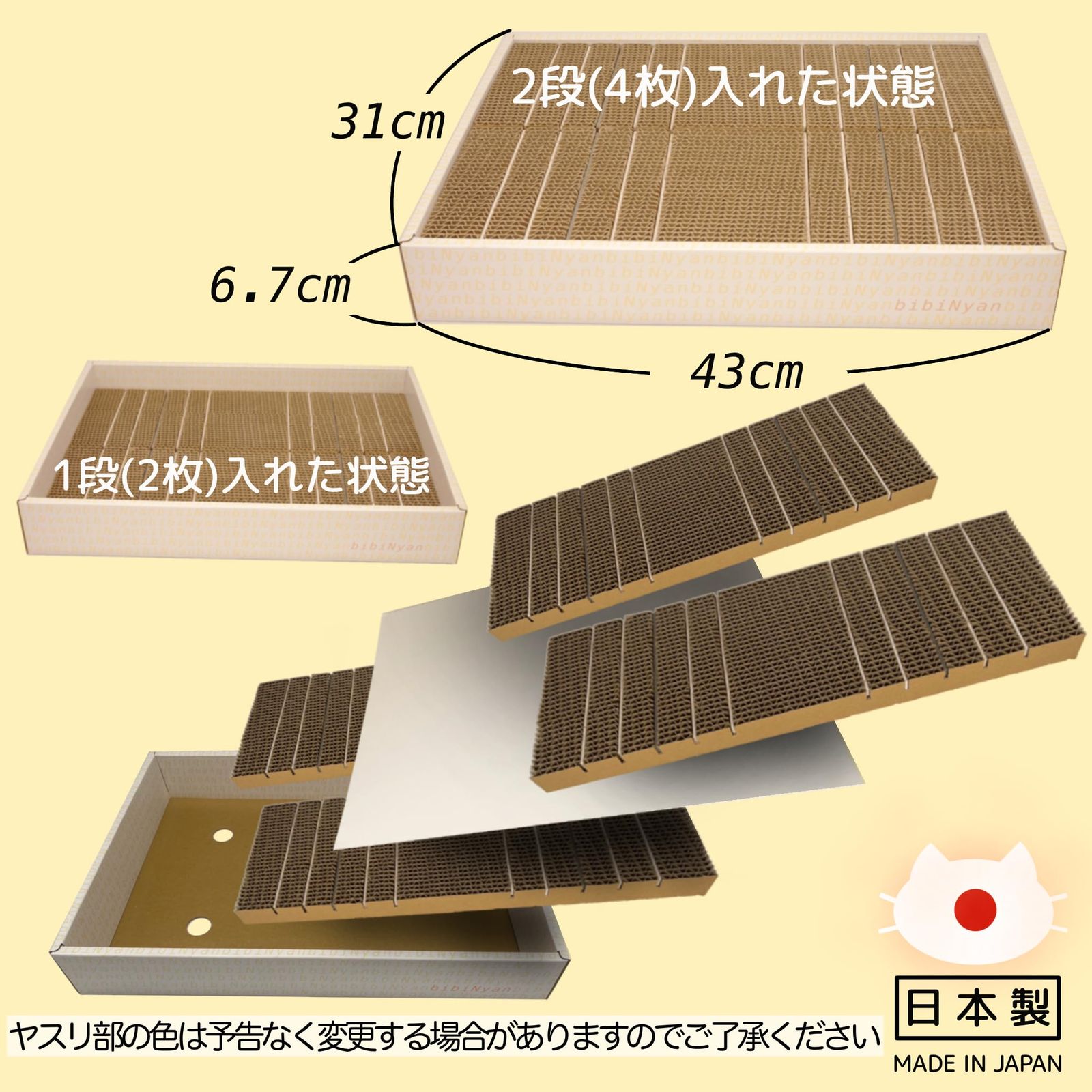 bibi Nyan 爪切り不要の爪とぎボード 猫 日本製 両面使用可 ヤスリ ストレス解消 ダンボール 負担軽減 ねこ つめとぎ 爪研ぎ ネコ ビビニャン 4枚入