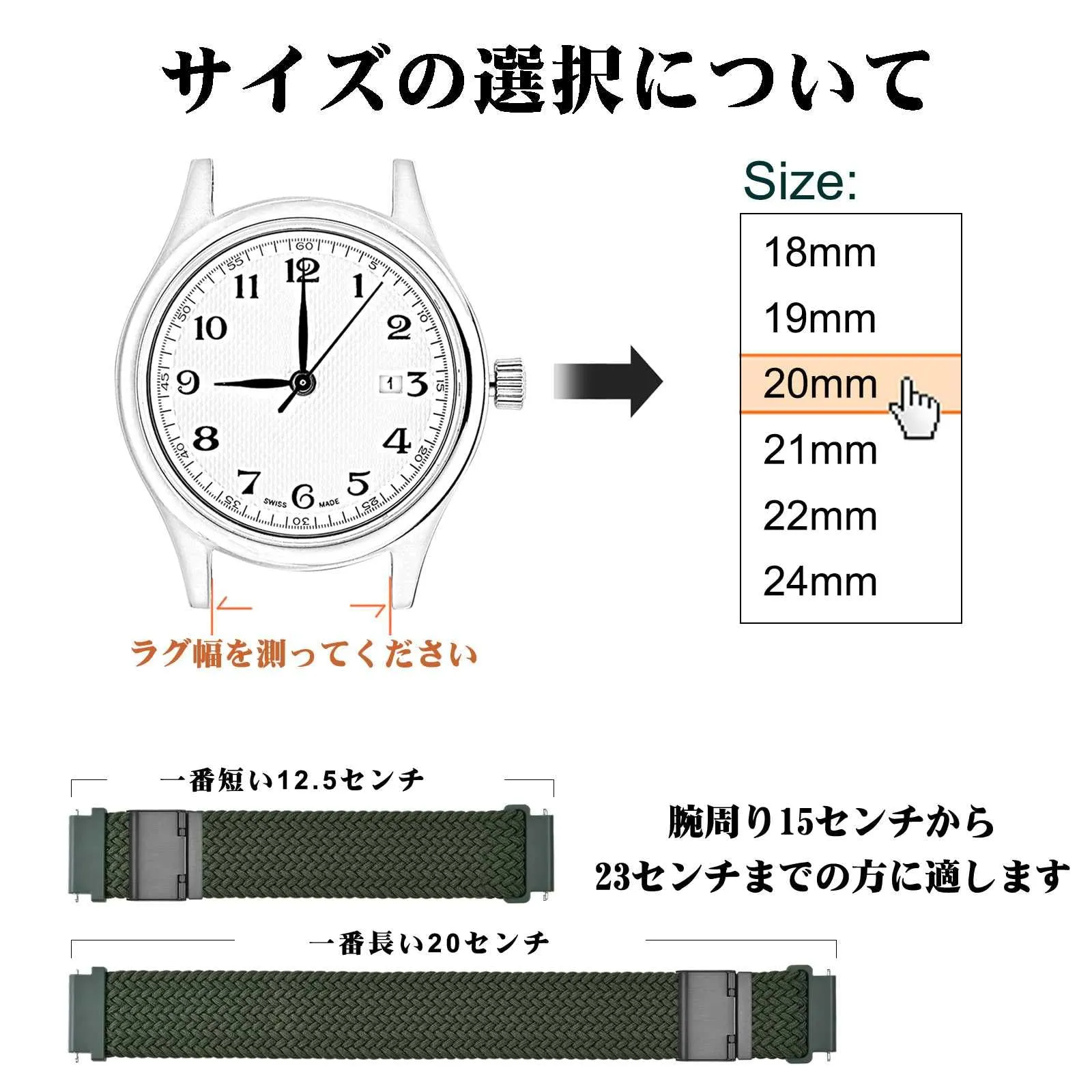 【対応機種】ラグ幅18mm/19mm/20mm/21mm/22mm/24mmの腕時計やスマートウォッチに適用します。注文する前に腕時計のラグ幅をご確認ください。