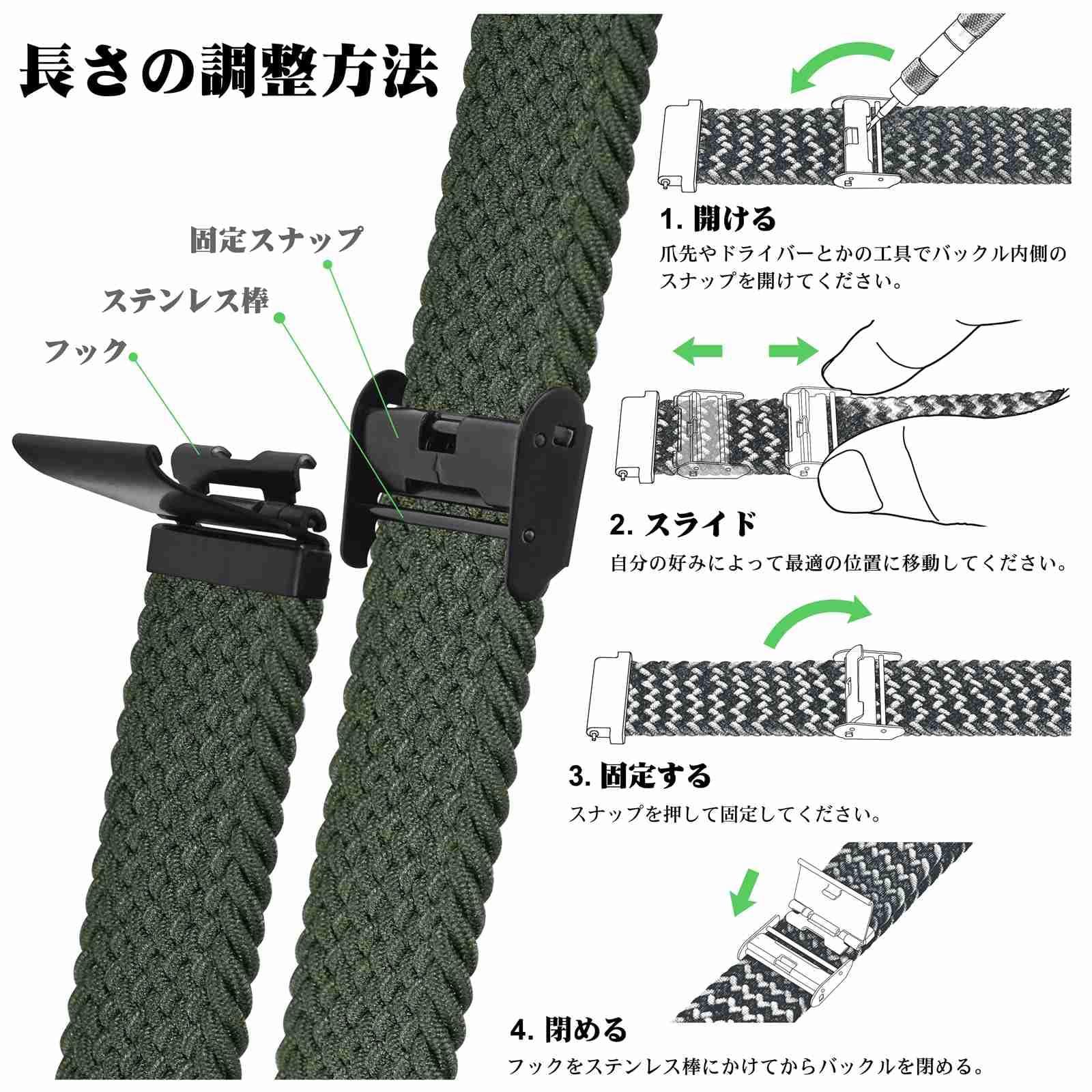 【無段階調整】手首サイズを自由に調整できるブレイデッドソロループ風時計ストラップです。バックルの位置を調整することによって緩めが好きな人もキツめが好きな人も手首サイズを自由に変えることができます。
