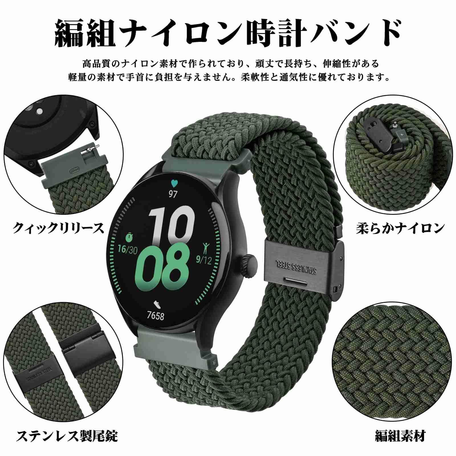 [WOCCI] 18mm 19mm 20mm 21mm 22mm 24mm 時計バンド ナイロン 時計ベルト 無段階調整 スマートウォッチ交換用バンド