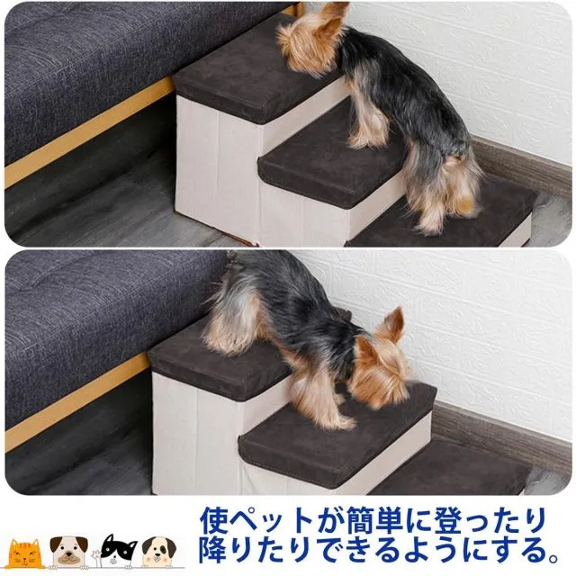 ◆商品名:小型犬用犬階段|高いベッドのためのドッグステップ|軽量で安全なペット階段猫ステップ付き