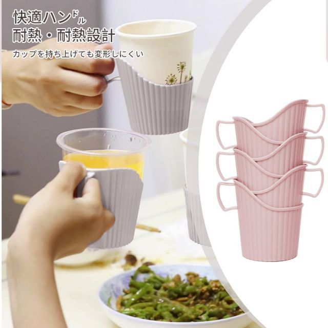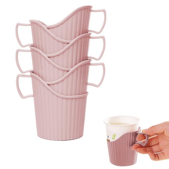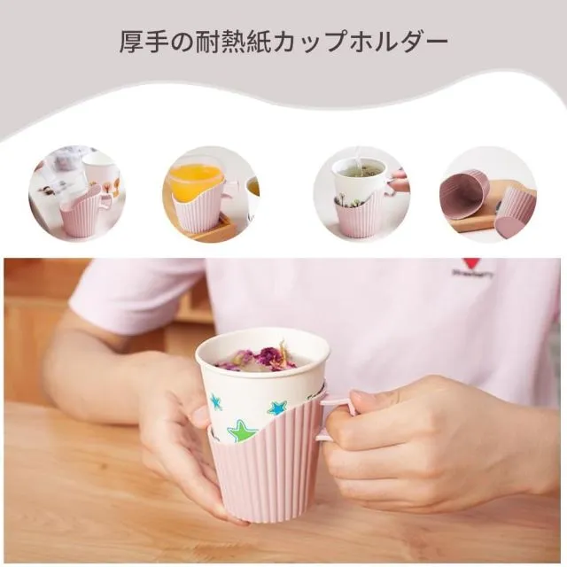◆商品名:紙コップホルダー6個セット-200~300ml対応、オフィスでのホットドリンクに最適、持ちやすく倒れにくい、マグカップ感覚で使用できる便利で安心なホルダー(ピンク*6個)