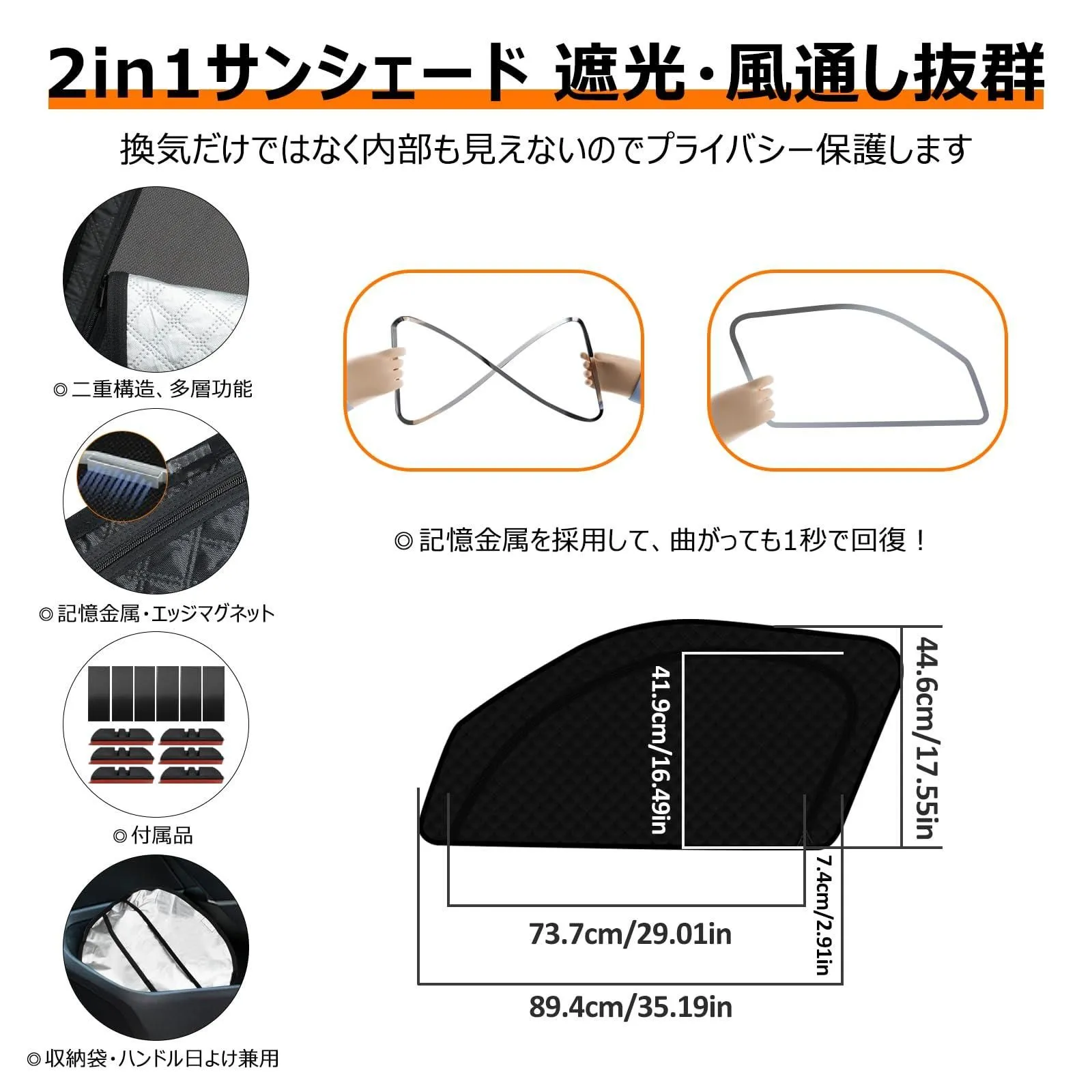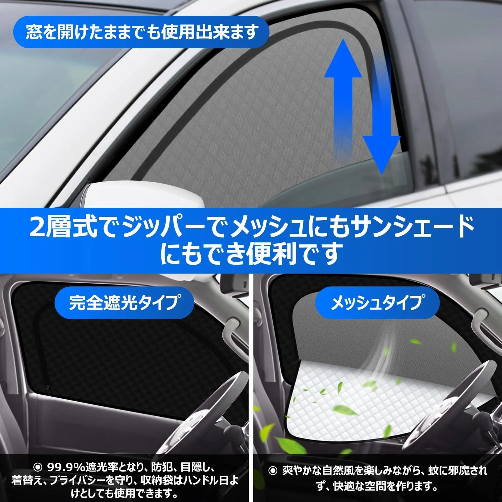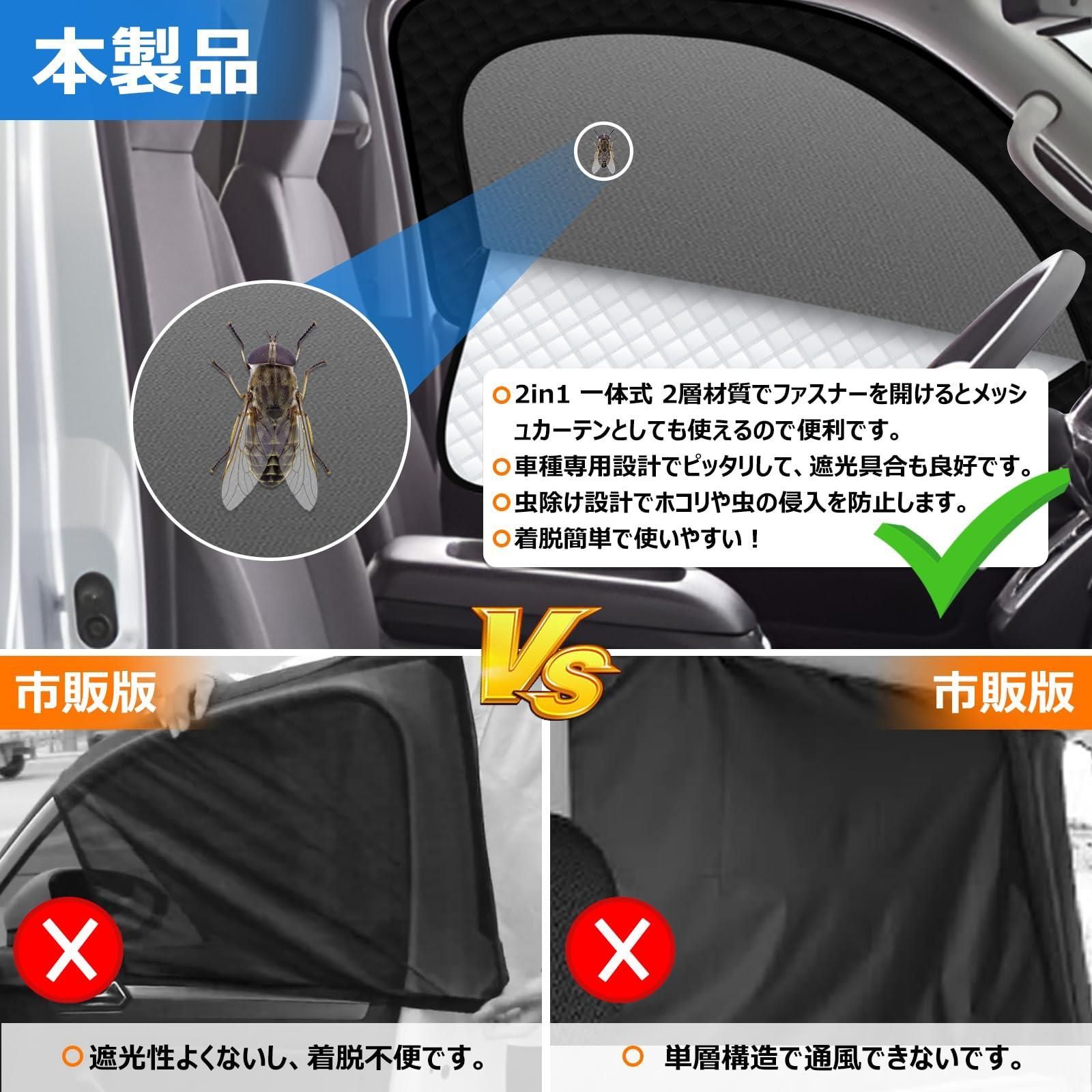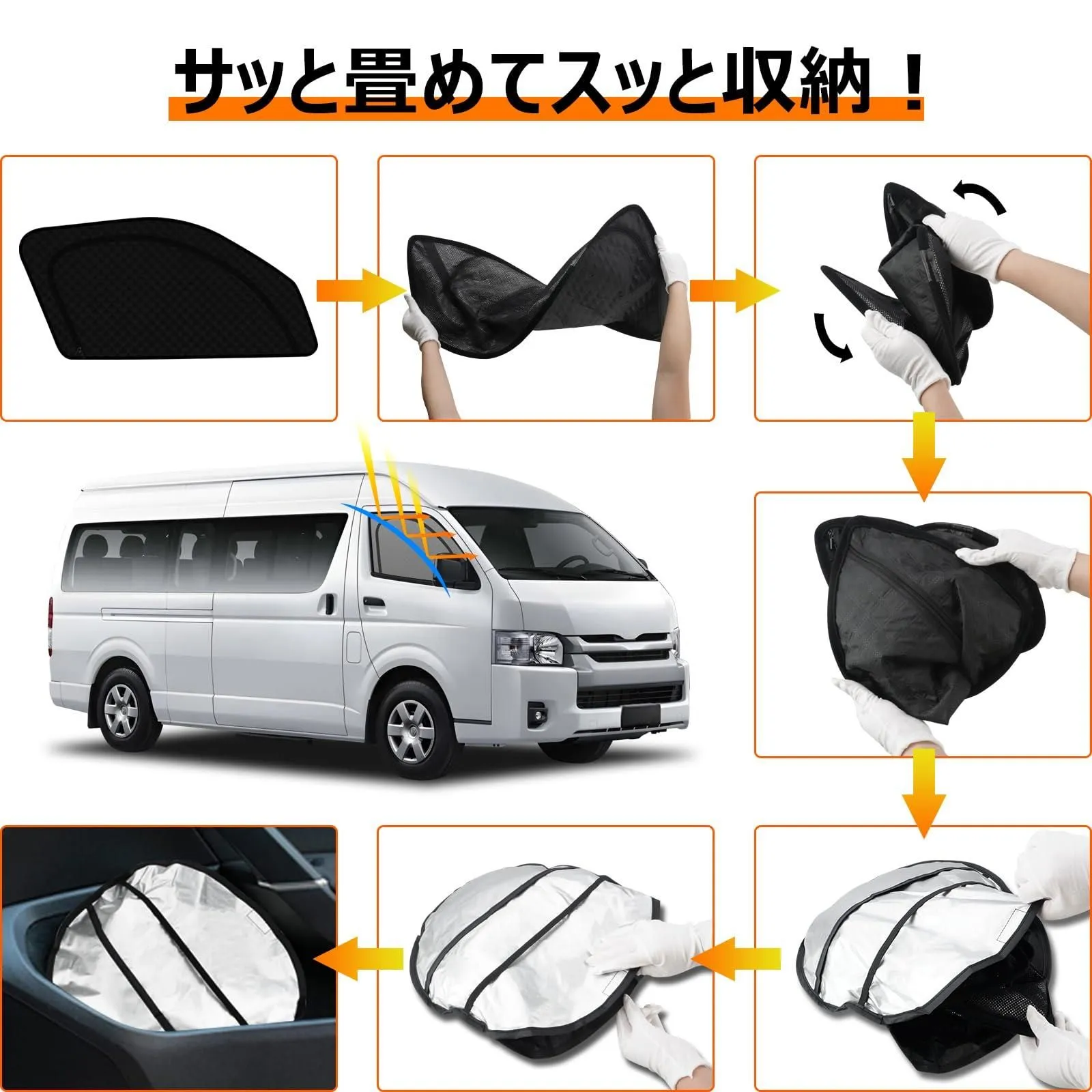 【カバー付き】2in1一体式 ハイエース 200系 着脱簡単 サンシェード メッシュカーテン マグネット 換気 遮光 サイド用 H16.8-現行 ワイド/標準 UVカット 運転席 助手席 日除け 2枚