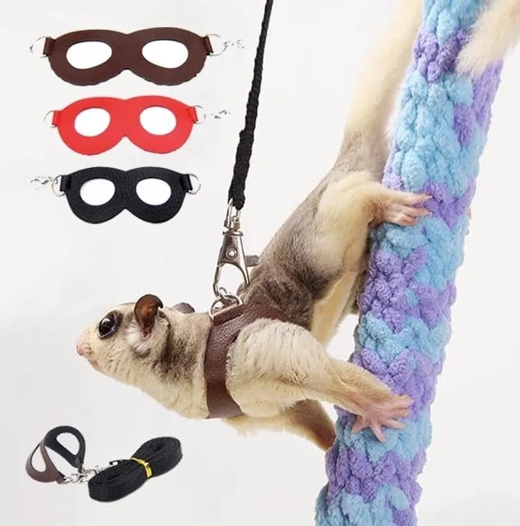 おでかけ用 モモンガ ハーネス 3サイズ リード フクロモモンガ 小動物 ハムスター 爬虫類 安全 トレーニング (ブラック)
