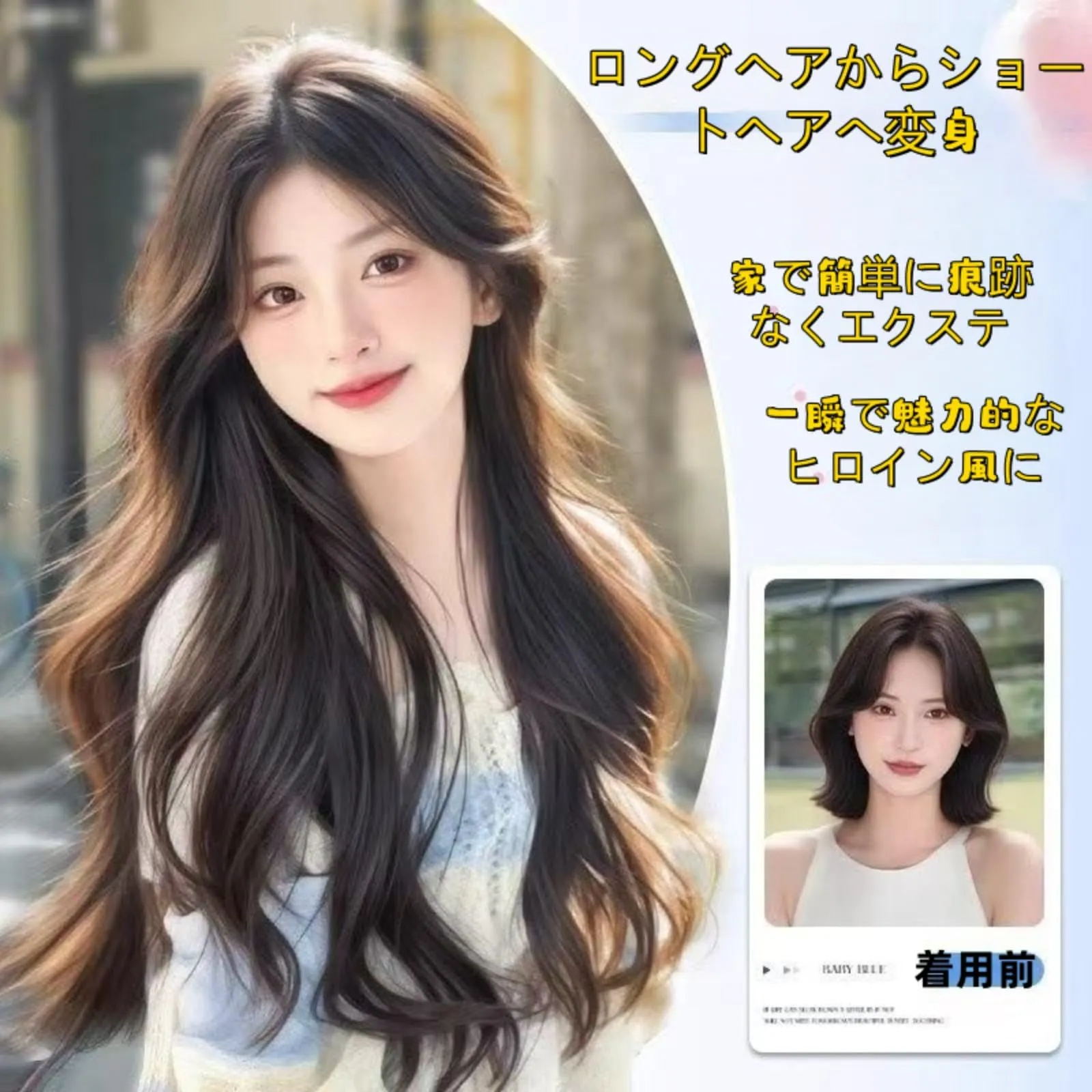 【素材】:高級耐熱ファイバーを採用形状記憶に優れ、スタイルが崩れにくく、お手入れにも手間がかかりません