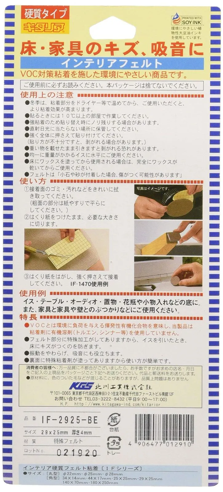 北川工業 キタリア フローリング キズ防止用品 インテリアフェルト 角型 IF-2925BE 29×25cm ベージュ 8個入