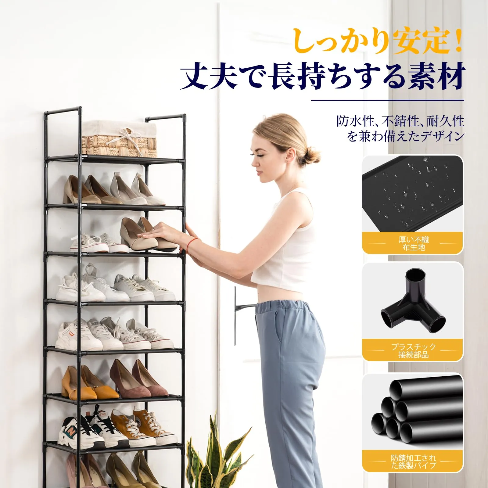 【丈夫でしっかりとしたシューズラック】1.太い鉄パイプ- 直径13mmのプラスチックコーティングされた鉄パイプを採用。防錆加工が施されており、優れた耐荷重性を持ち、長期間の使用でも変形しにくい靴箱です。2.防水層付き不織布- 高級コーティングが施された丈夫な不織布は防水性があり、水滴や埃も簡単に布巾で拭き取ることができ、シューズラックの清潔を保ちます。3.耐摩耗ジョイント-高強度の環境配慮型PPプラスチック材料を使用したジョイントが、パイプをしっかりと支え、靴ラクを安心して使用できます。
