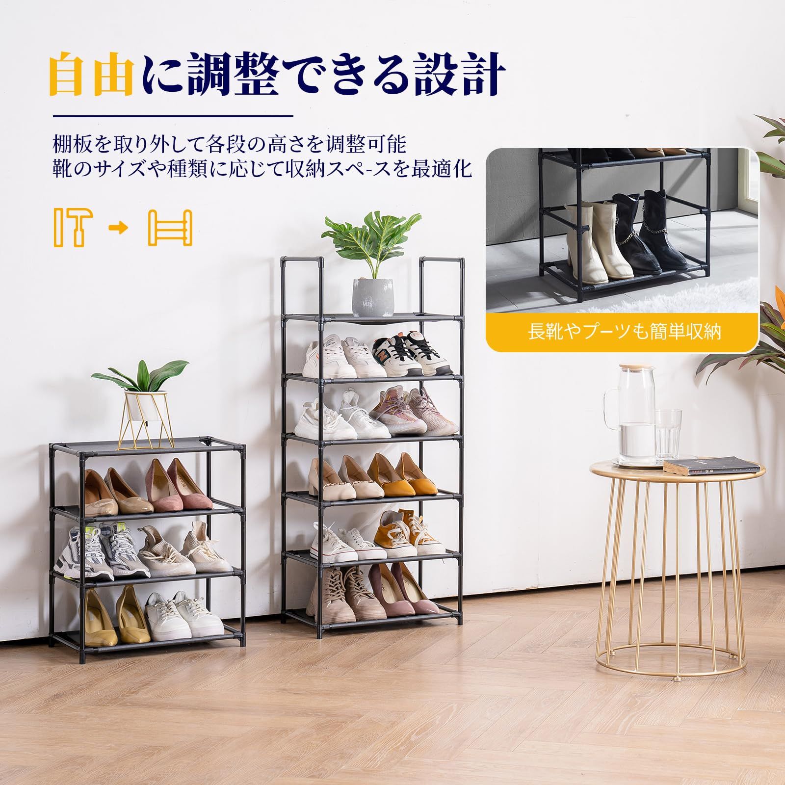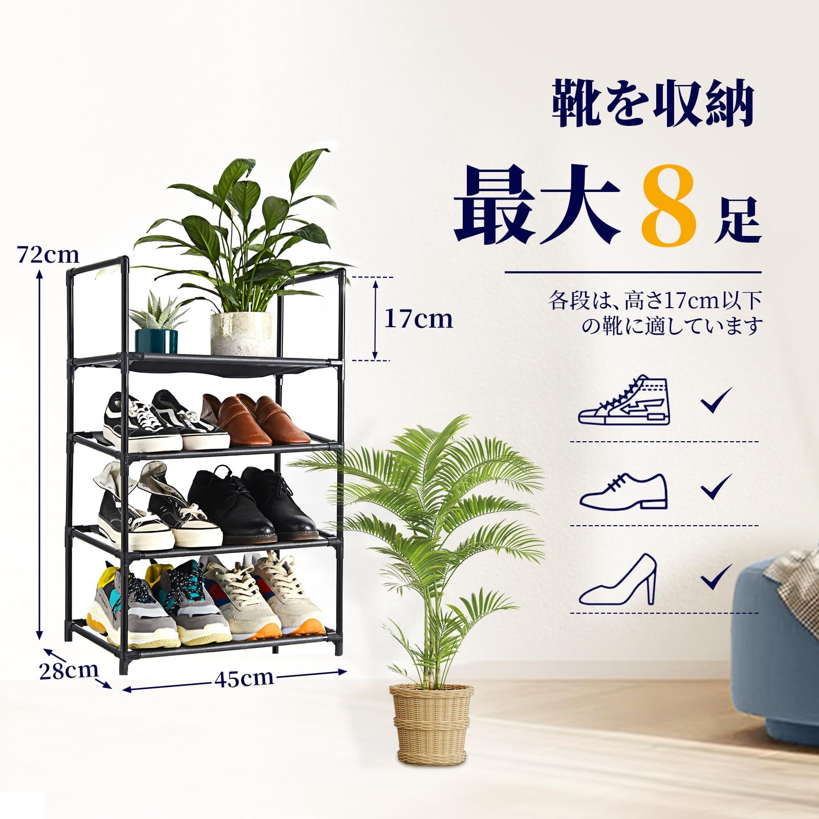 APICIZON シューズラック 4段 靴箱 下駄箱 シューズラック スリム 靴 収納 省スペース 靴棚 玄関 シューズケース シューズボックス 靴入れ 靴ラック 組み立て簡単(4段 ブラック)