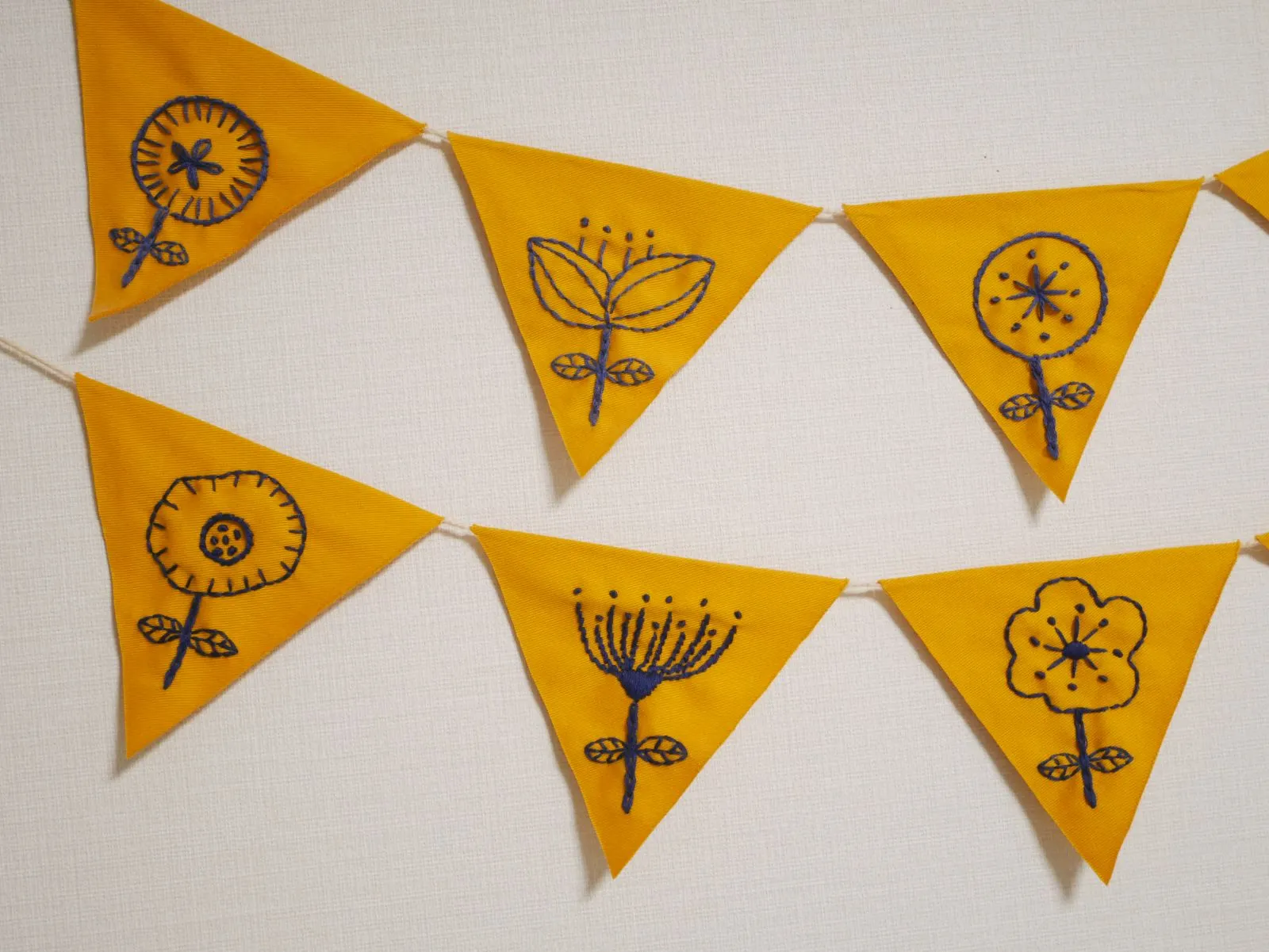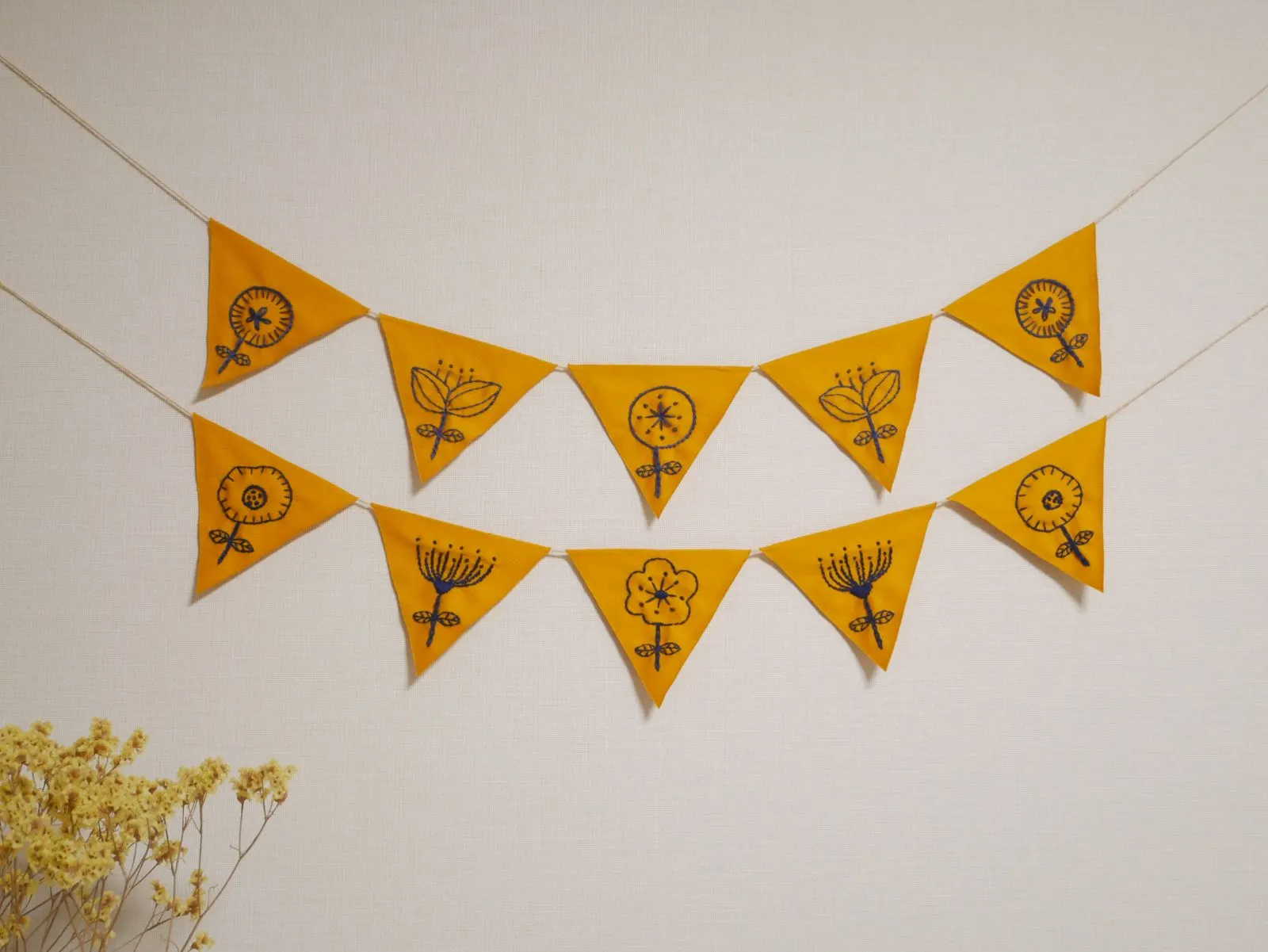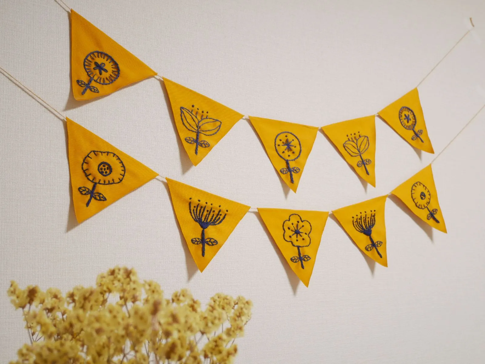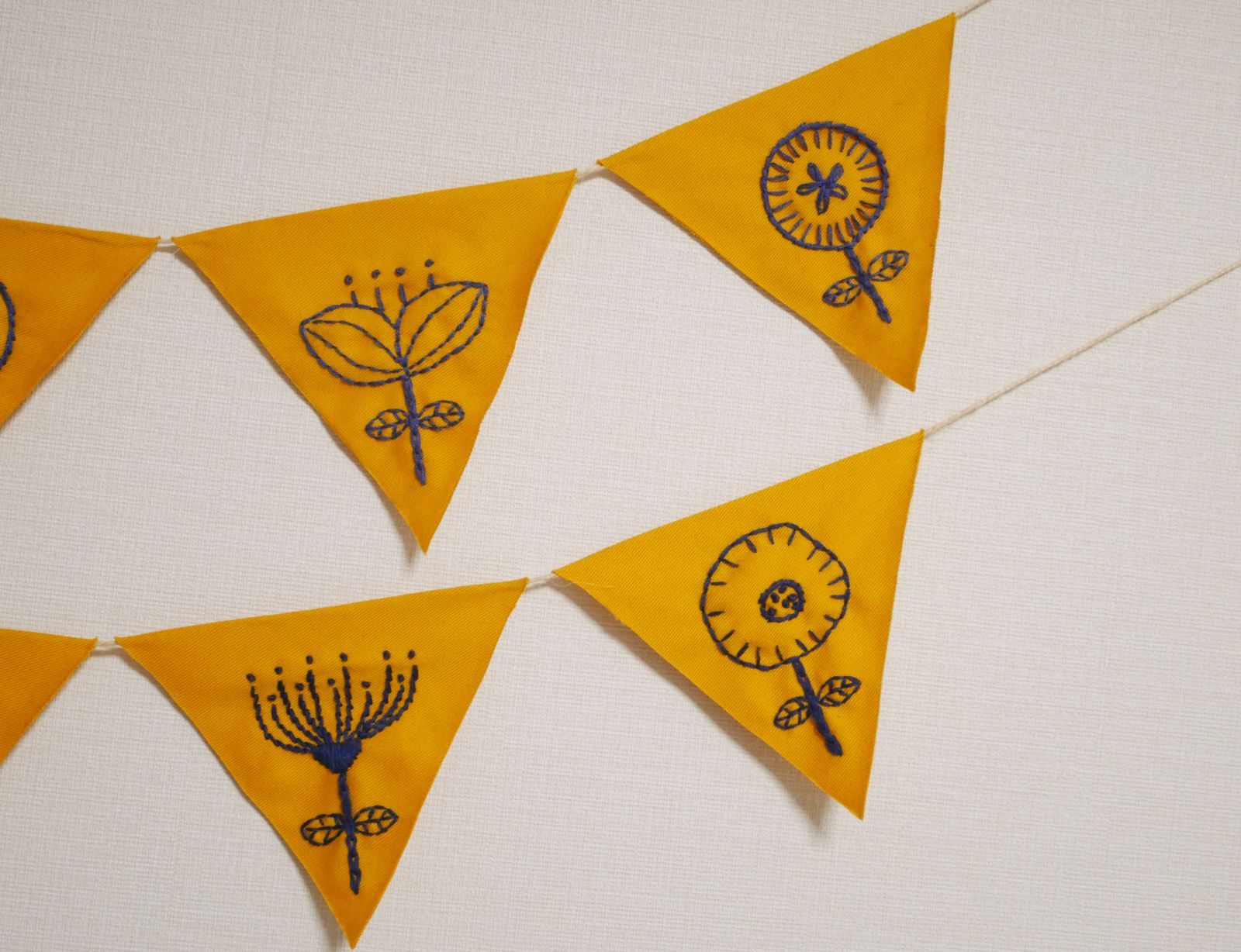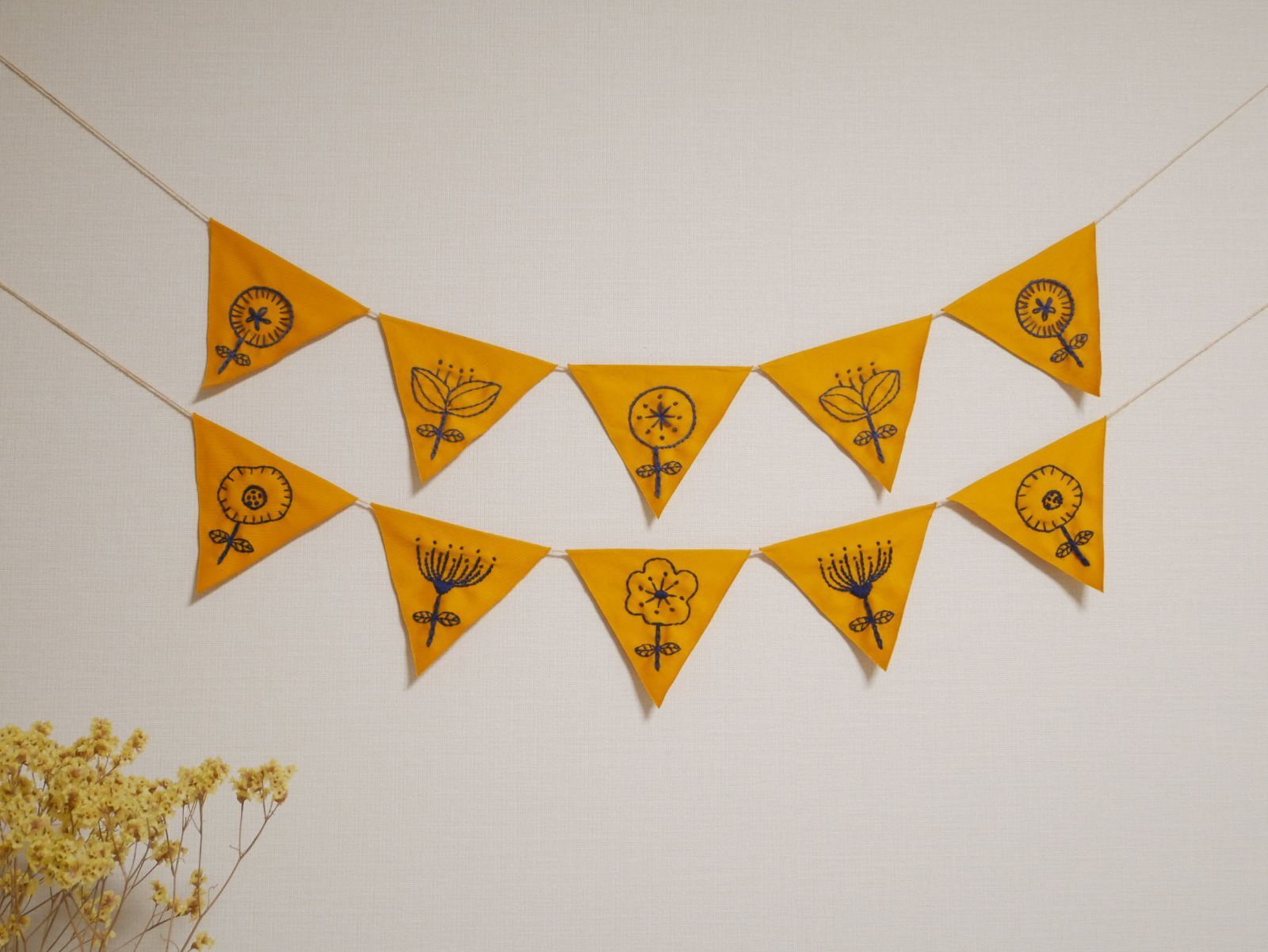 フラッグガーランド 刺繍 花柄 北欧風