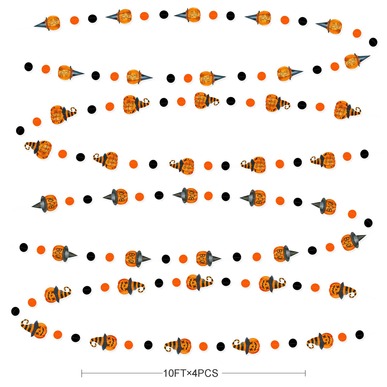 【商品情報】4本 ハロウィンのかぼちゃの サークル ドット ガーランド入り。各弦の長約 3M/ 10フィート、全長約は12M/40フィート。