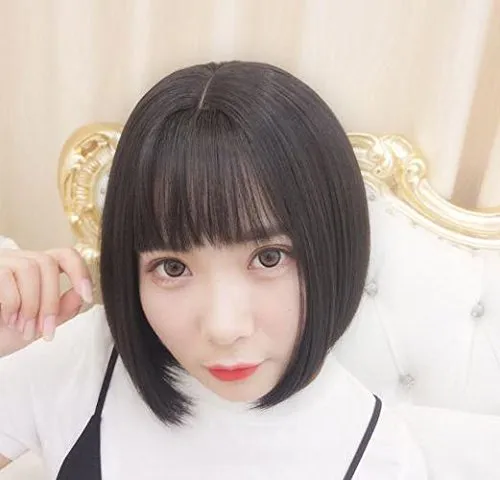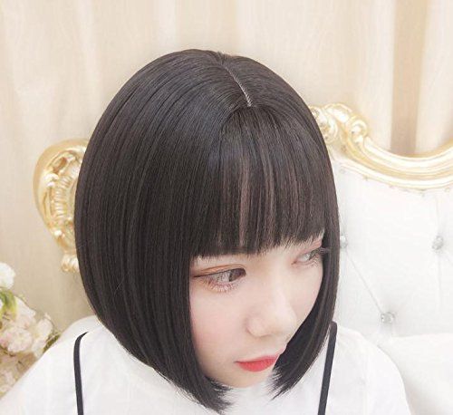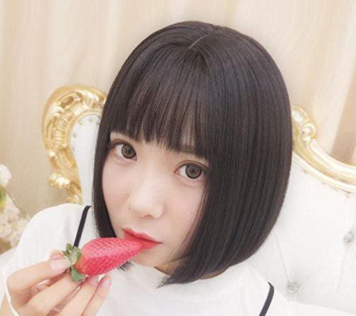 ウィッグ ショートボブ 黒髪 黒 かつら ハロウィン ストレート ショート ボブ 普段使い ぱっつん 前髪 自然 ミディアム カット レディース 女性 カール ウェーブ カラー ブラック