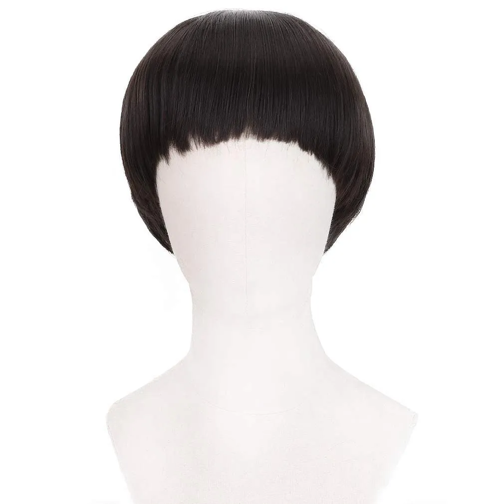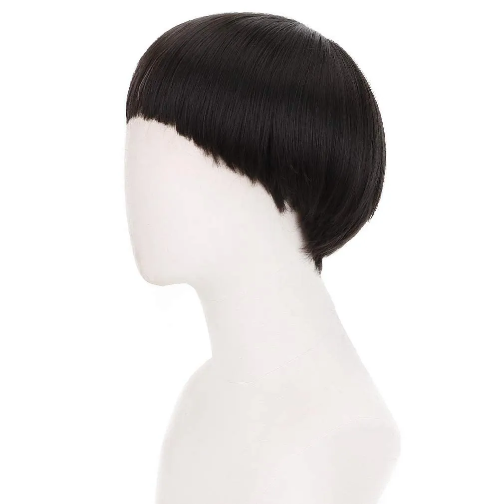 ショートブラックコスプレウィッグ-1960年代男性合成ボウルカットマッシュルームヘアアニメウィッグ日常用ハロウィンクリスマスコスチュームウィッグ