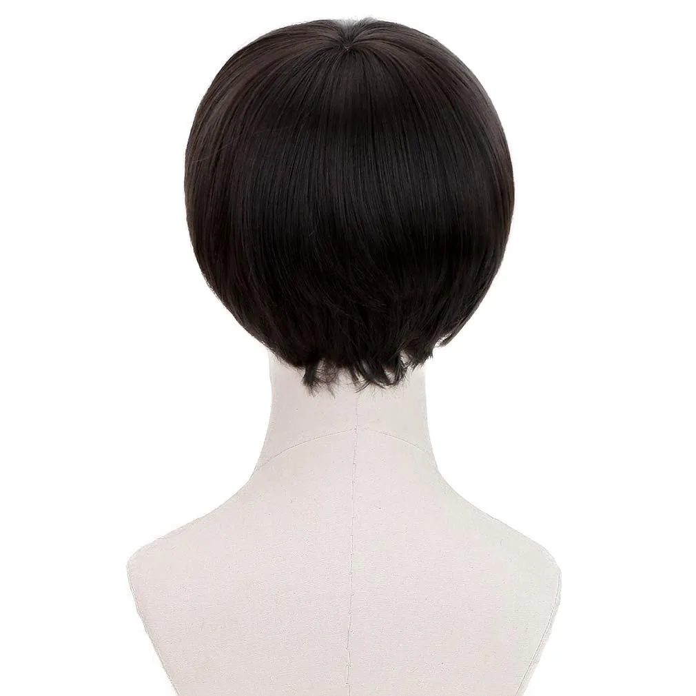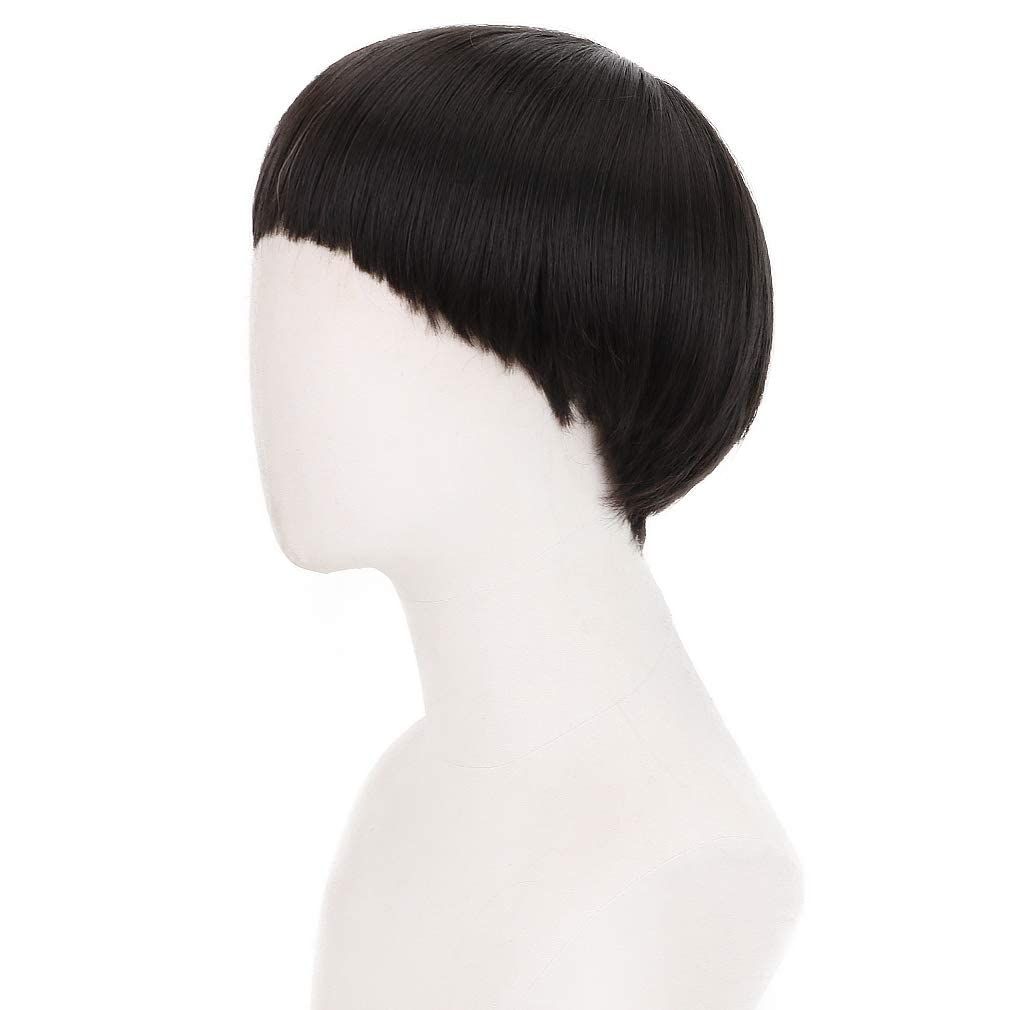 FREE BEAUTY ショートブラックコスプレウィッグ-1960年代男性合成ボウルカットマッシュルームヘアアニメウィッグ日常用ハロウィンクリスマスコスチュームウィッグ