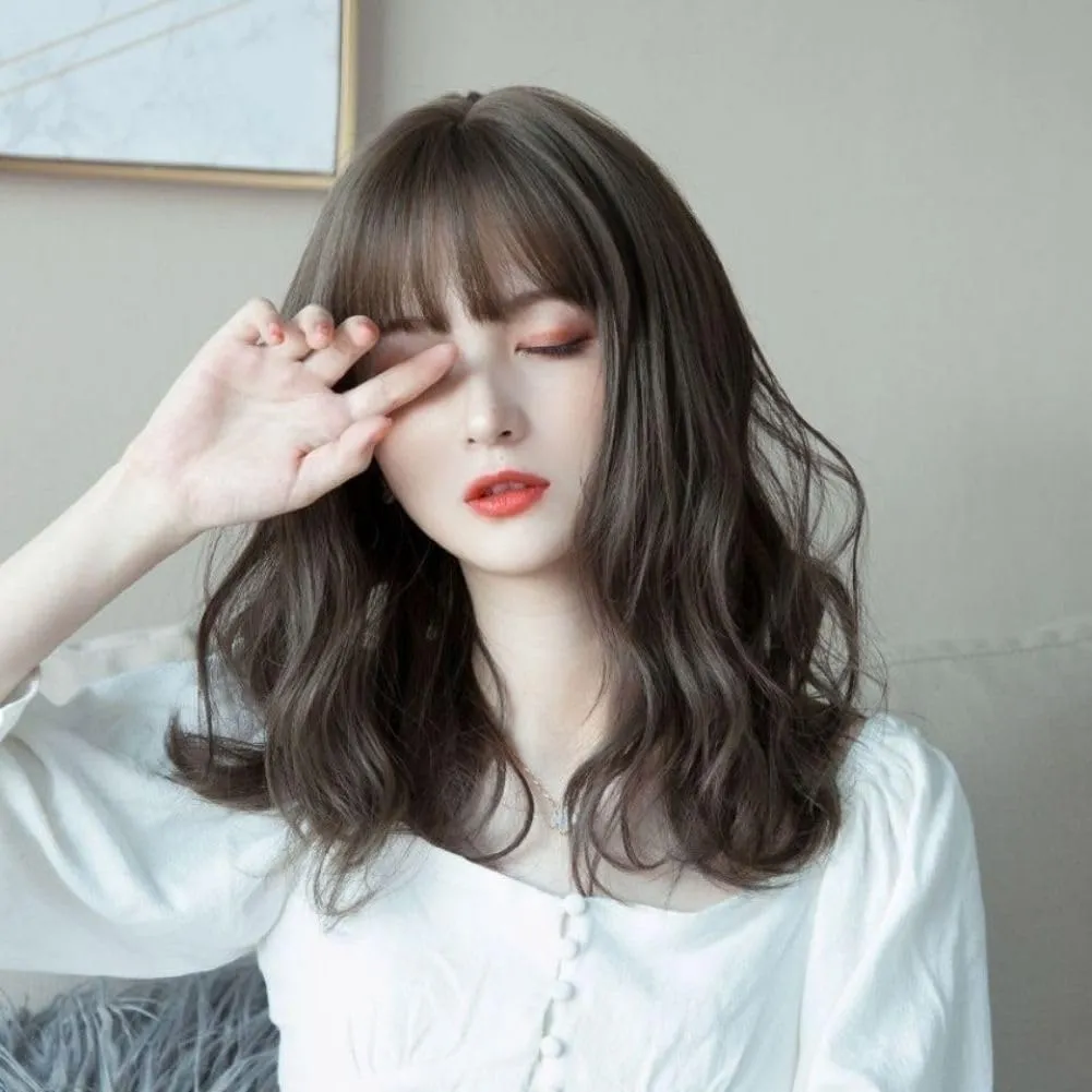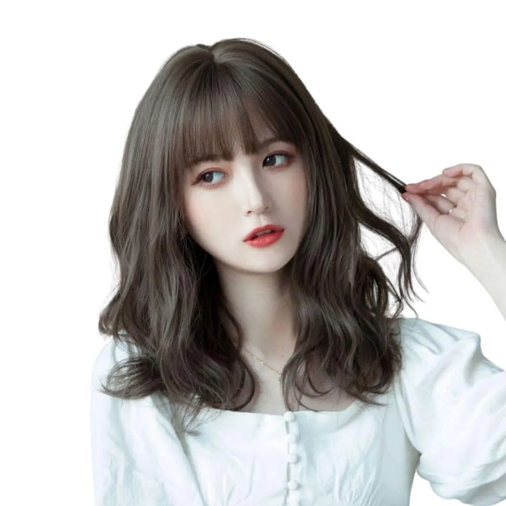 【フルウィッグ】ゆるくカールされたミディアムカールフルウィッグです。ナチュラルな小顔効果もあり、日常的な普段使いができます。初心者にも安心で簡単に着用可能です。