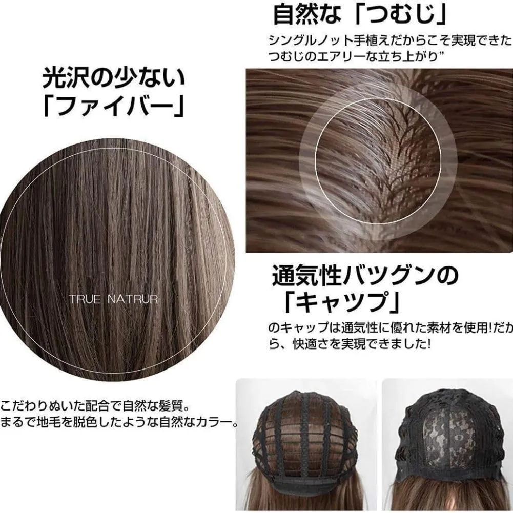 【素材】耐熱性がある高級耐熱ファイバーを使用しているため、ドライヤー、アイロン、コテなどを使用してスタイリングできます。つけ心地が快適な高級ネットを採用しているため、暑くなりにくく、つむじは人工頭皮がついている型で、生え際も自然で自分の髪のようにリアルです。 人毛に近い質感で非常に手触りが柔らかいです。光沢、明るさを抑えた自然なカラーになっています。