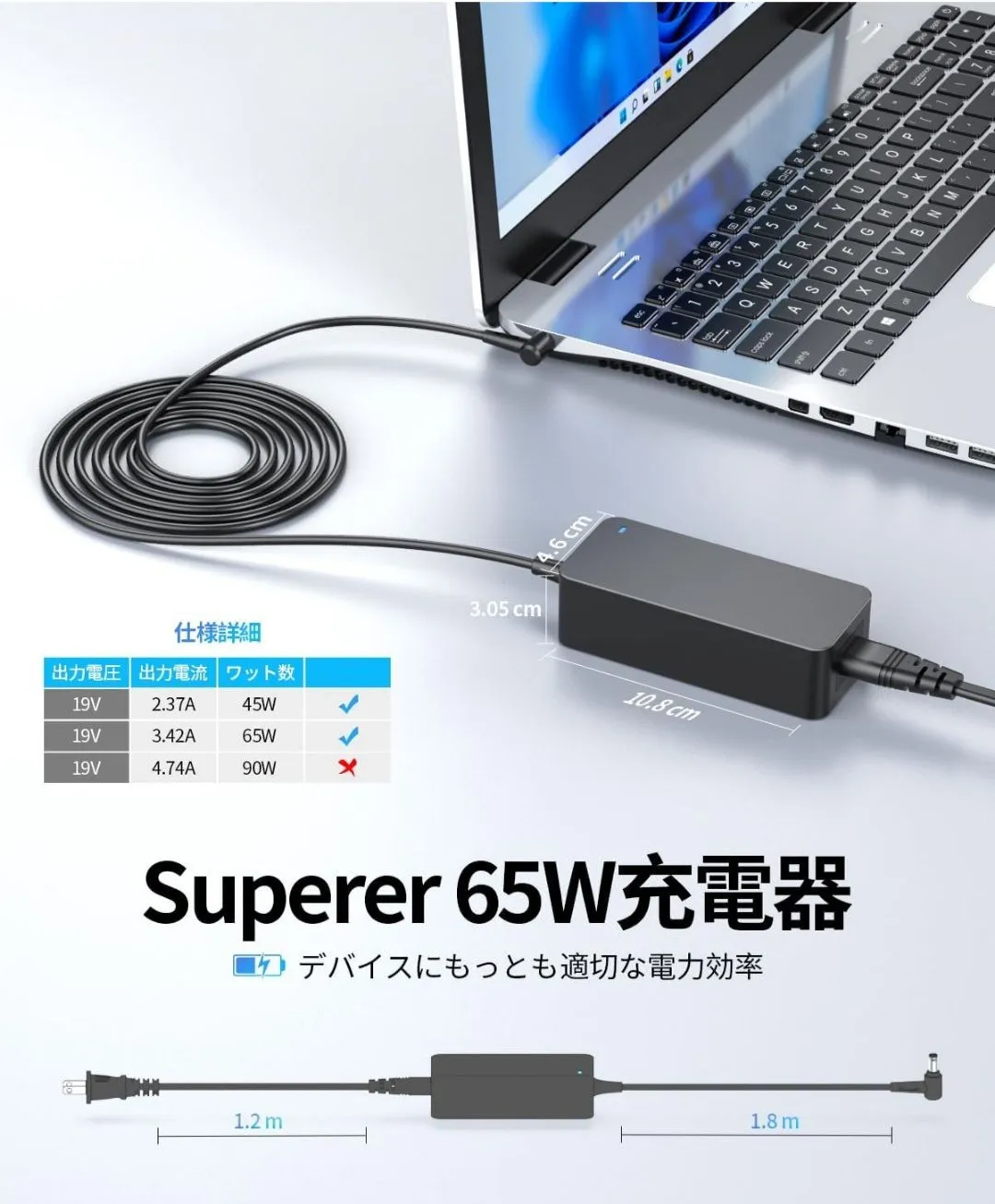 【商品情報】入力:100V-240V;出力:19V 3.42A 65W;全長:3M;パッケージ内容:ACアダプター(1個)、電源コード(1本);[ほかの65W以下・5.5*2.5mm丸型コネクターデバイスにも兼用]