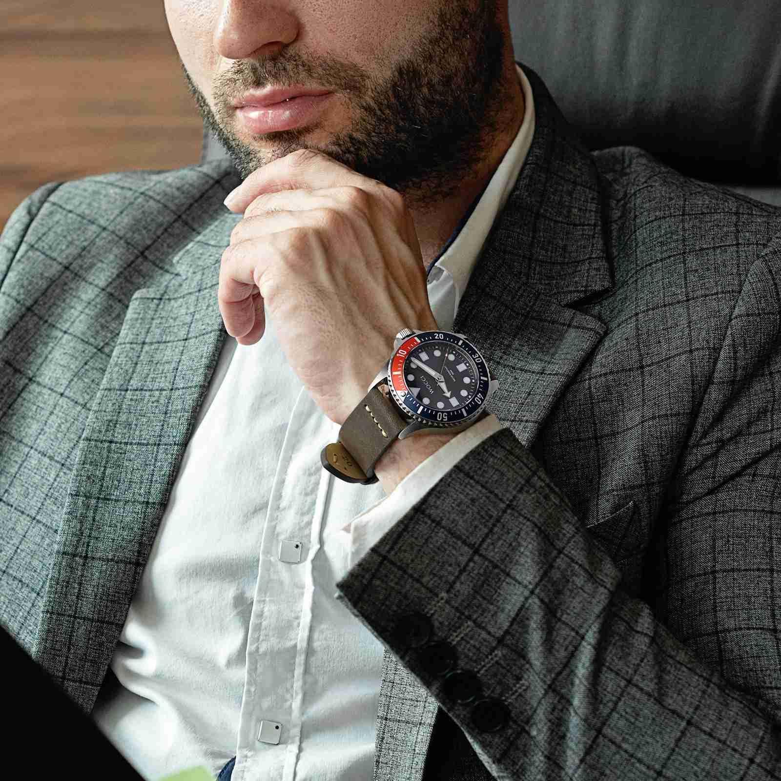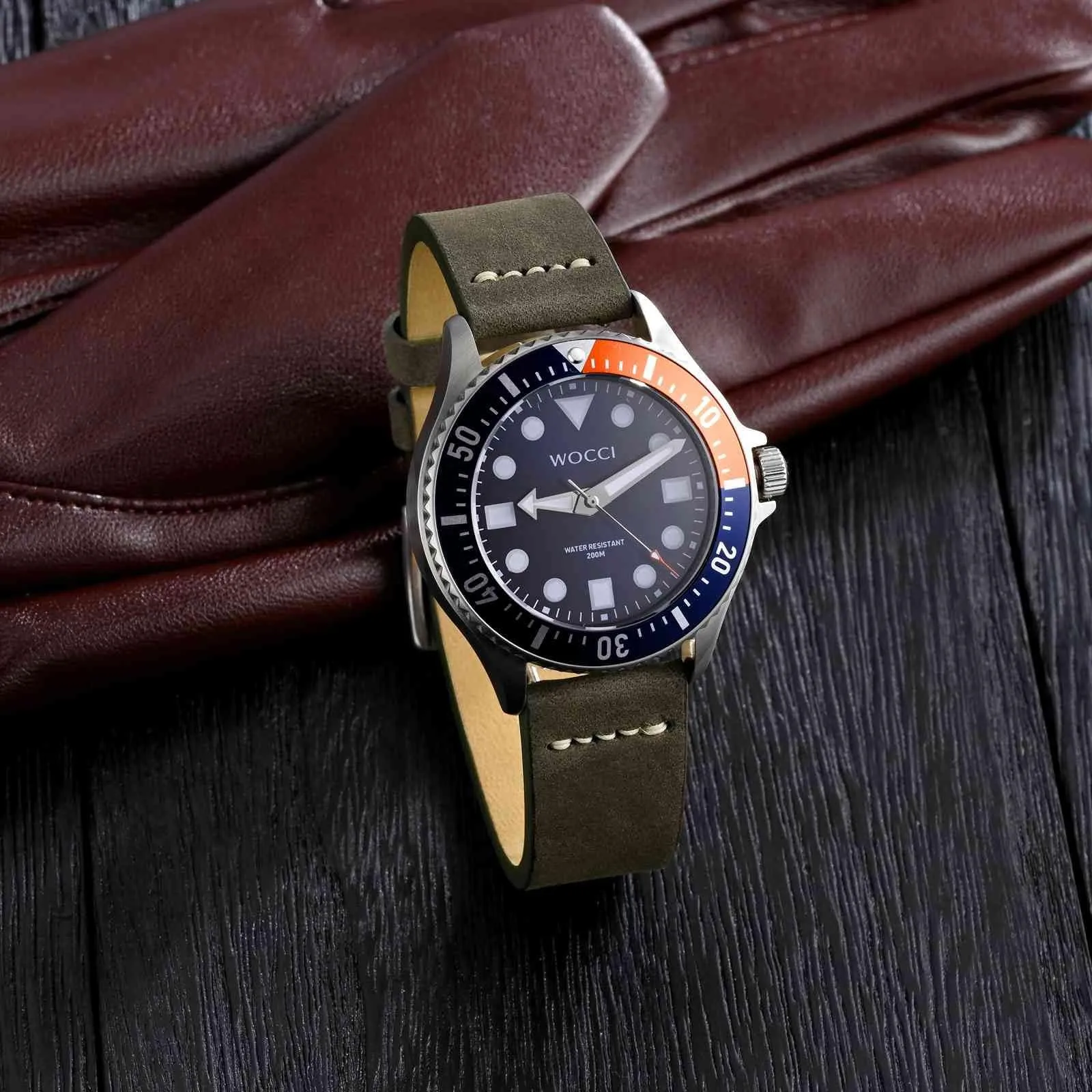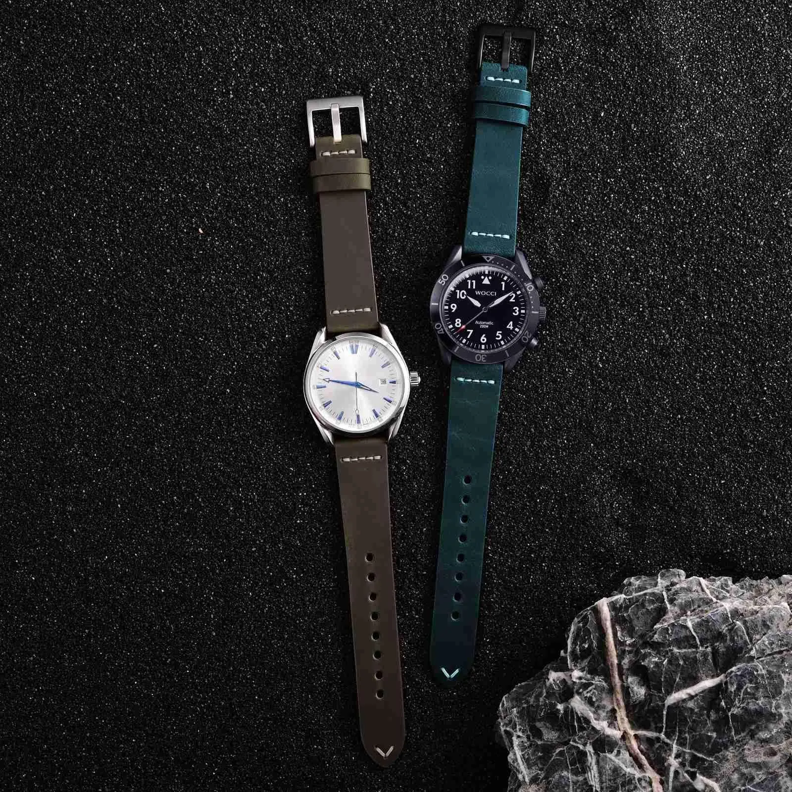 ステッチはすべてフレンチワックス糸を使用し、手作業で縫製されています。時計バンドの耐久性を高めながらヴィンテージな外観を与え、パイロットウォッチやスポーツウォッチに最適です。