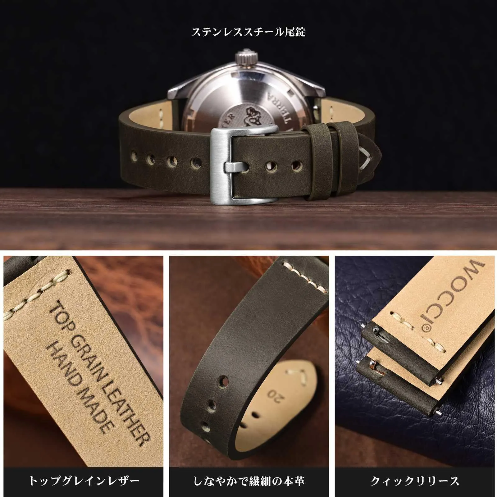 [WOCCI] 時計ベルト 本革 アンティーク腕時計バンド 17mm 18mm 19mm 20mm 21mm 22mm 24mm 26mmトップグレインレザー Quick Release