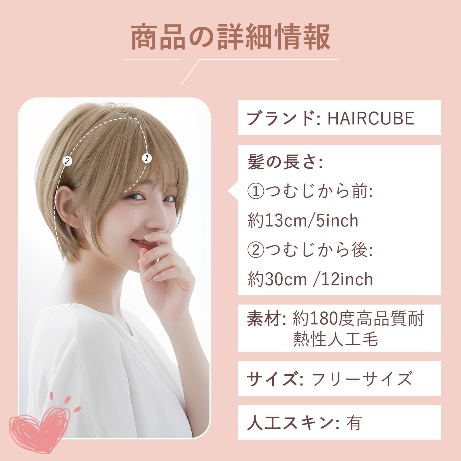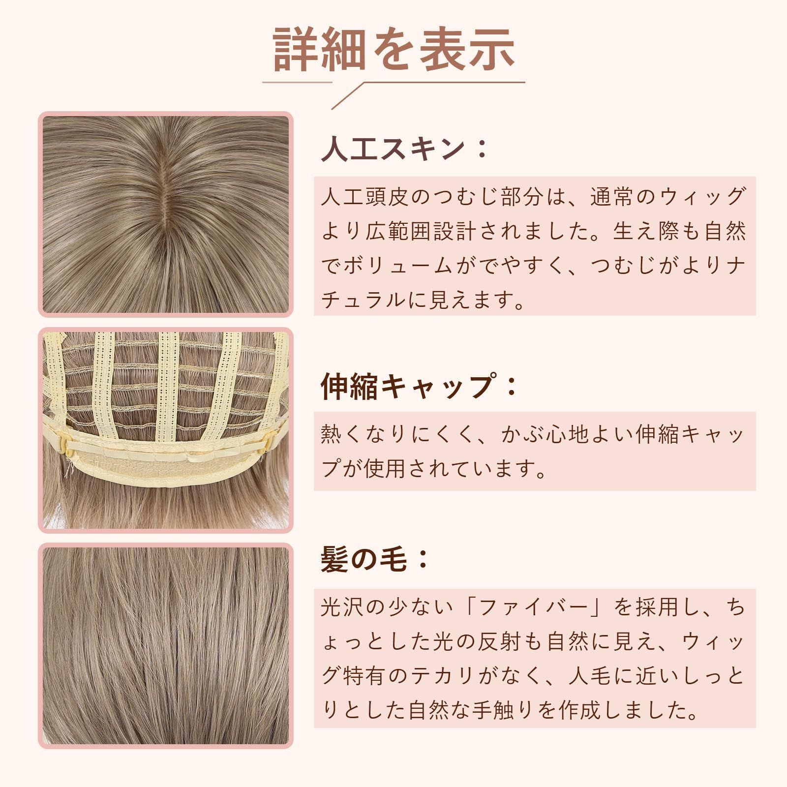サイズ:前髪:約14cm、サイド:約25cm、後髪:約30cm;比較的シンプルなデザインのため、さまざまな頭の形や顔型に簡単に対応できます。適度な長さで、重たく見えず、日常の手入れも楽で、忙しい現代女性に最適です。
