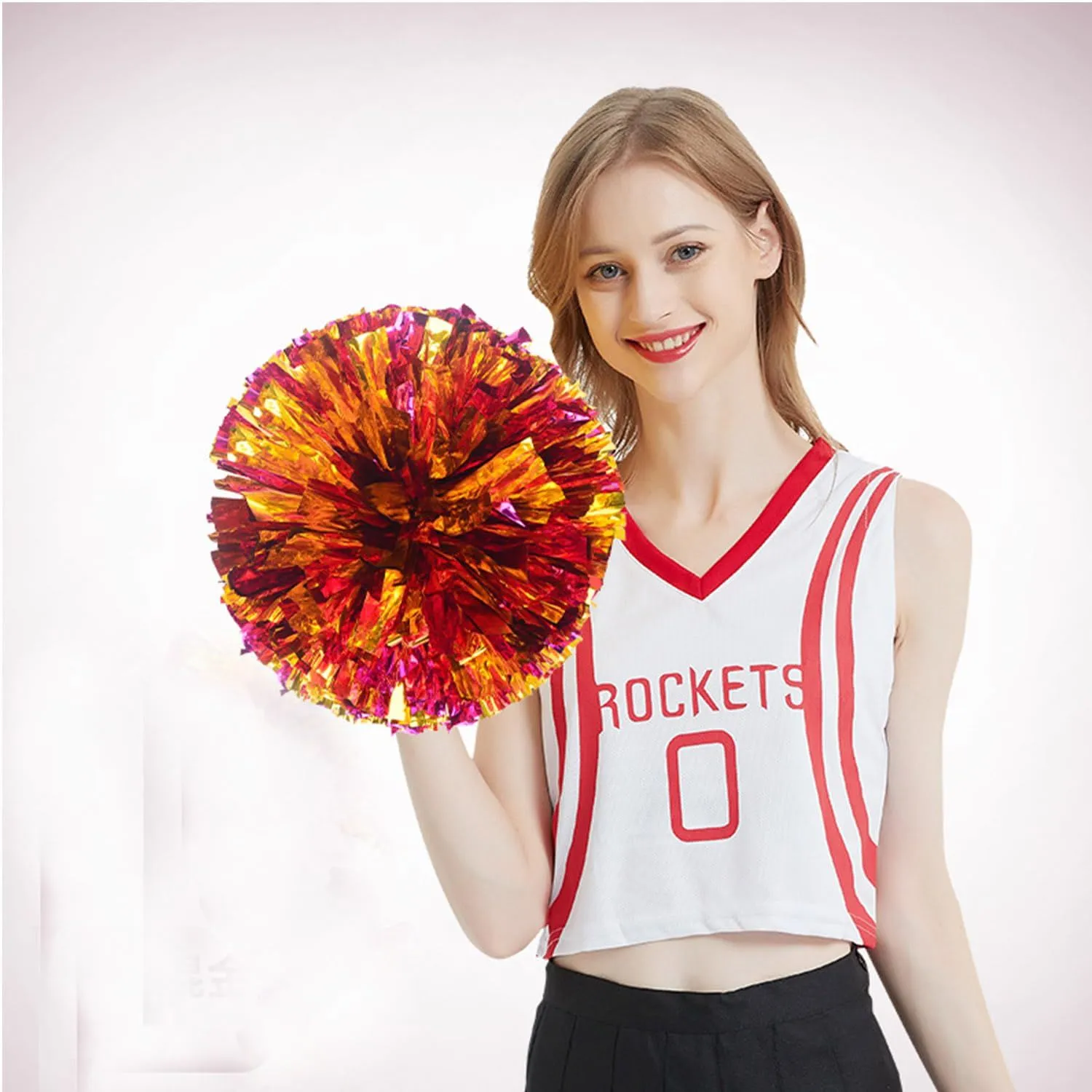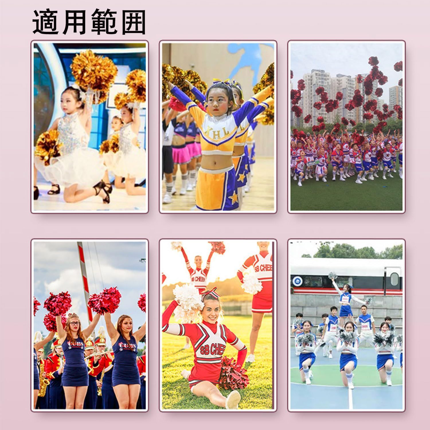 【応援グッズ】:光沢感のあるポンポンは視覚的に華やかさを加え、持ち手が付いているので使いやすく、観客の応援を引き立てます。競技の際に士気を鼓舞するために最適なポンポンです。