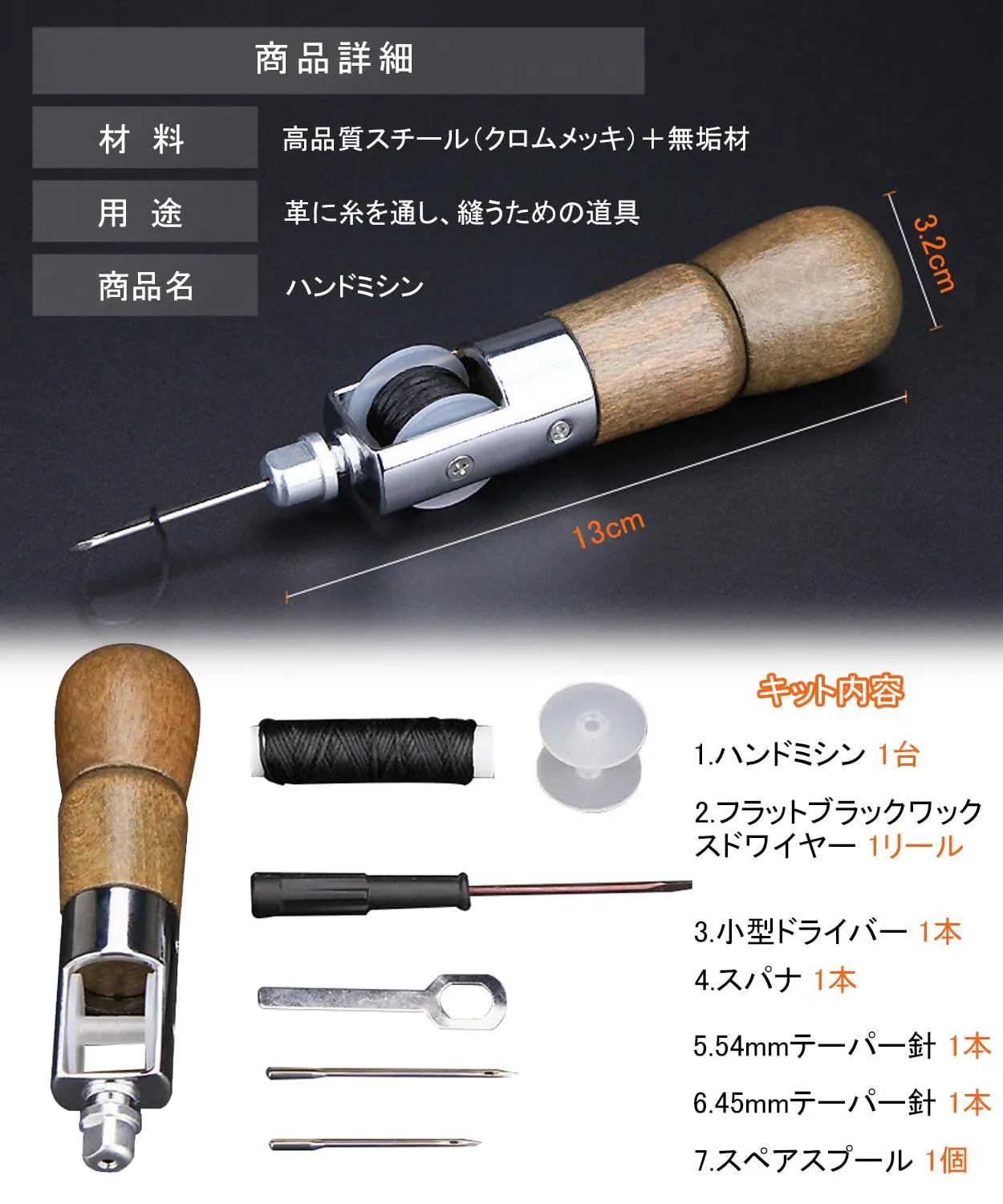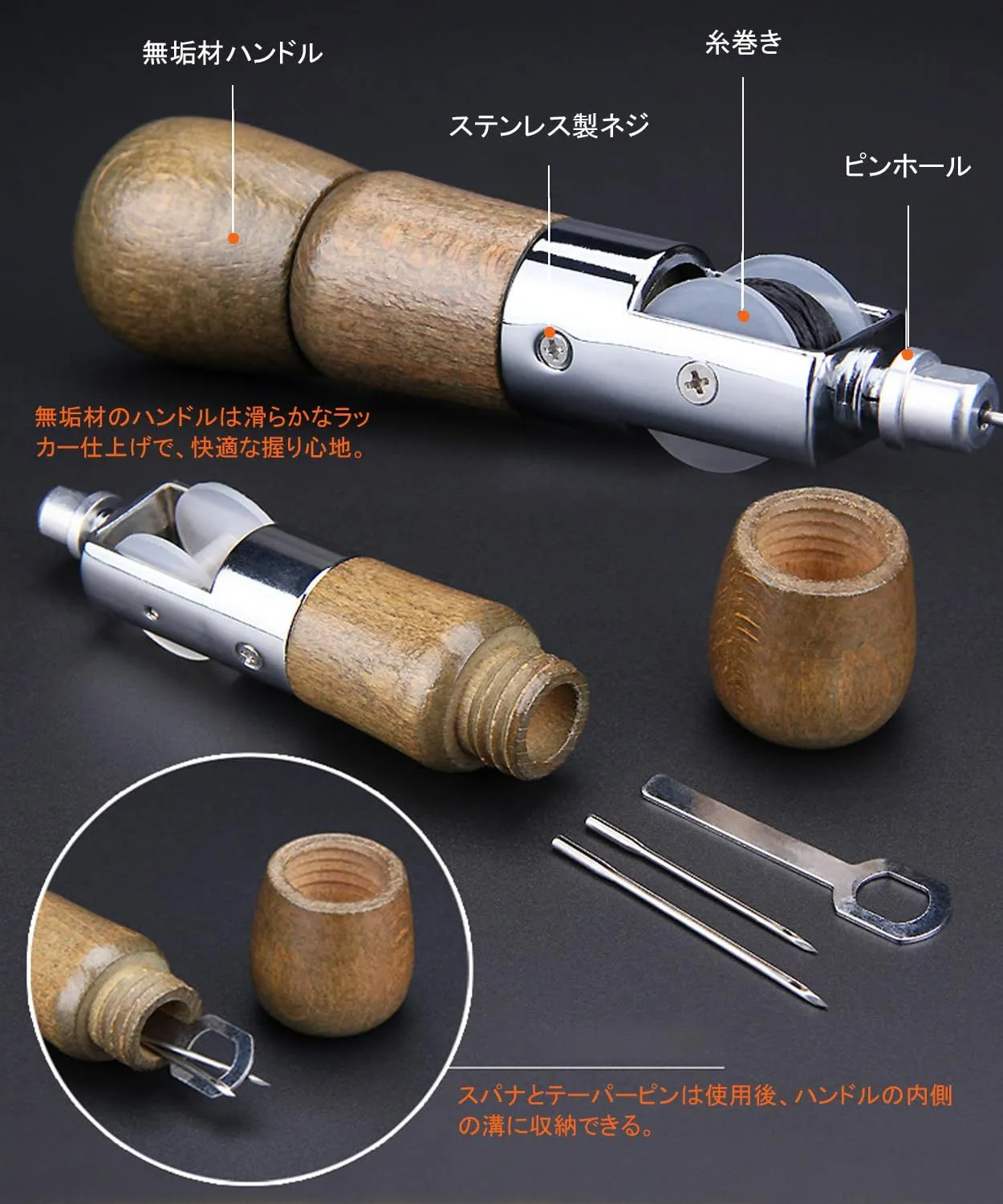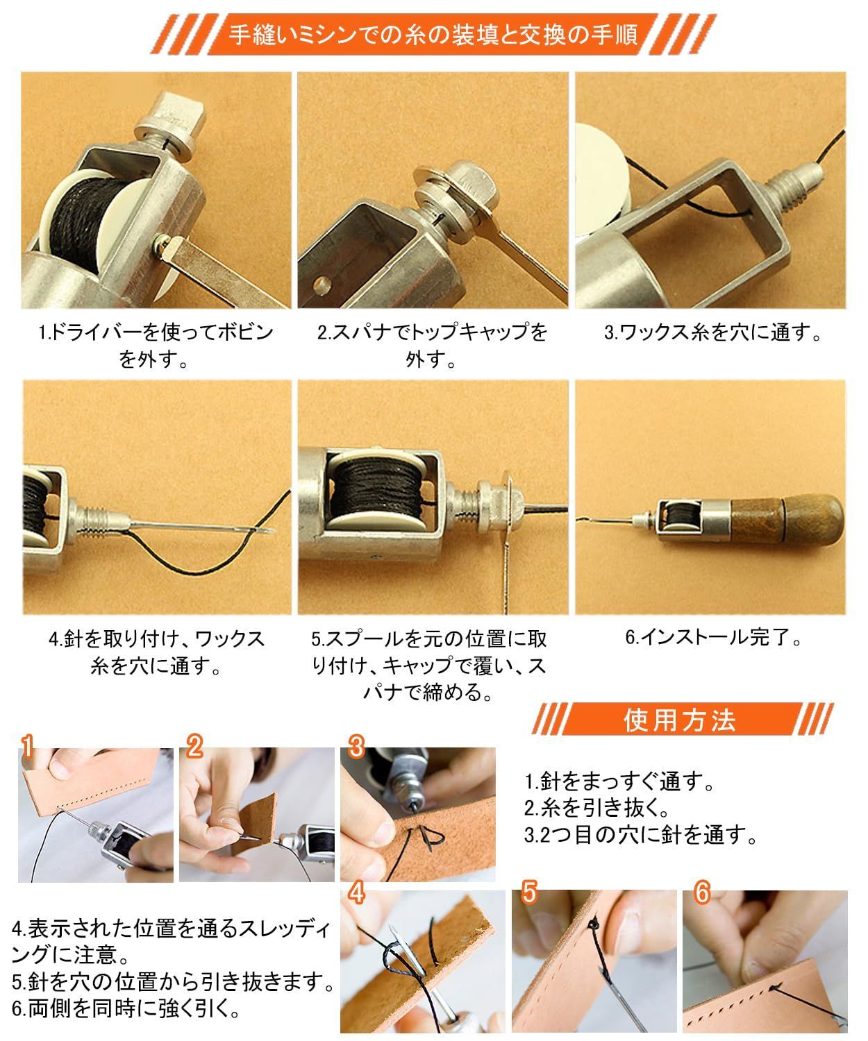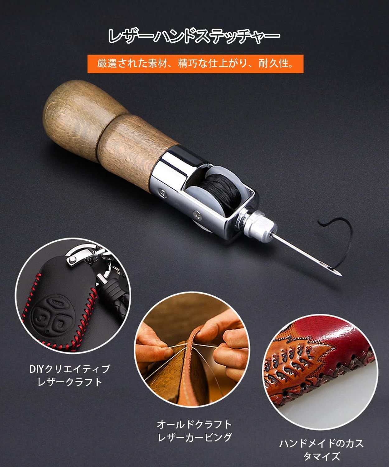 【高い効率で】この皮具手縫い器は、手作りプロジェクトや修理作業に最適です。独自のデザインと木製のハンドルにより、操作が簡単になり、異なるサイズの2本の針と1巻の縫い糸が提供され、お手持ちの縫製タスクがこれほど簡単になることはありません。