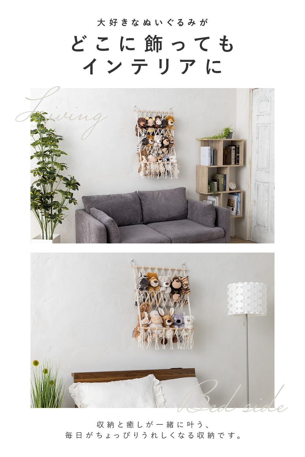 【吊り下げ収納で空間活用】お気に入りのぬいぐるみや生活雑貨をすっきり可愛く収納。吊り下げて飾れるハンモック型。デッドスペースを活かした壁掛け省スペース収納。実用性とおしゃれさを兼ね備え、リビングや子供部屋、寝室などどんな空間にも自然になじみます。ぬいぐるみの整理や片付けに困っている方におすすめのアイテムです。