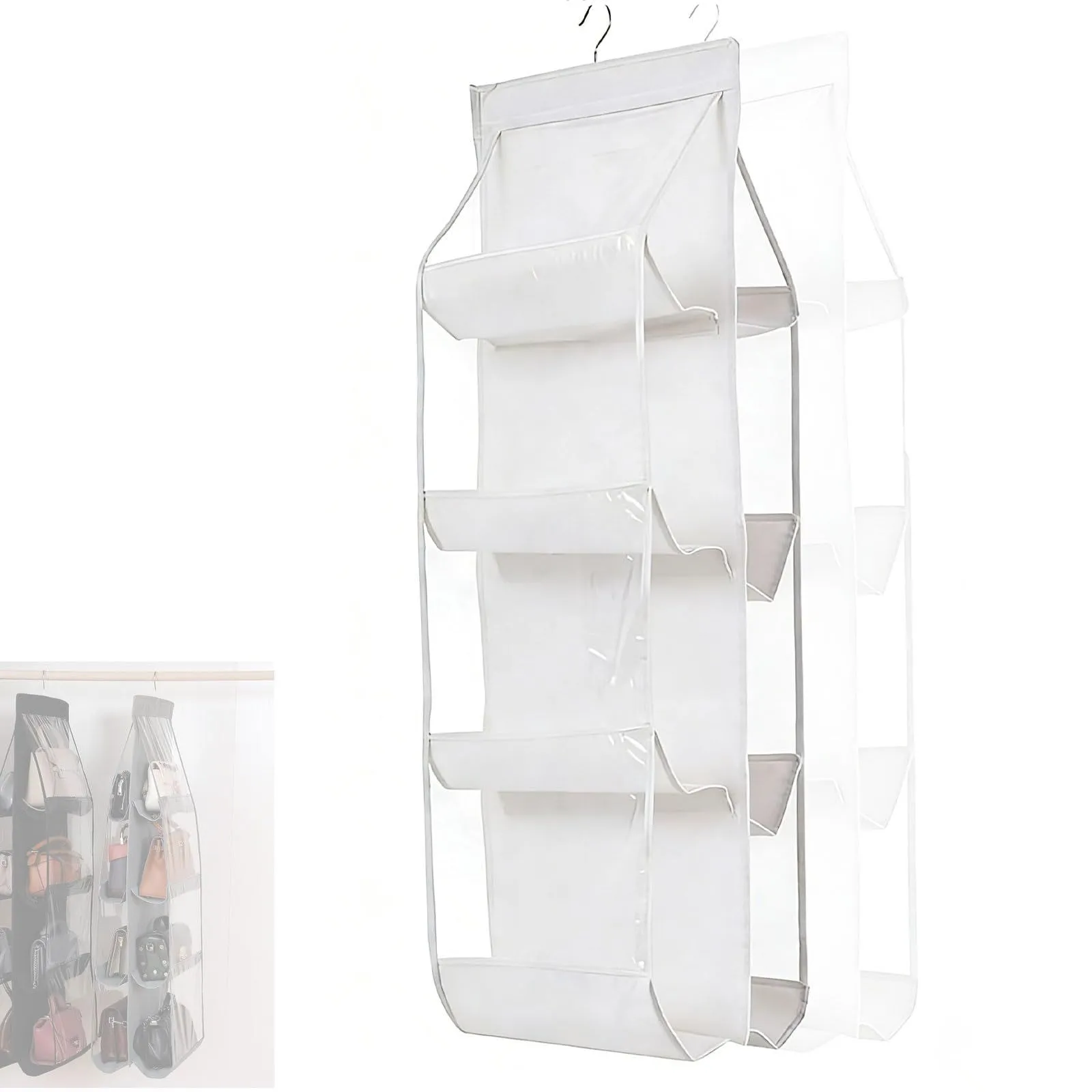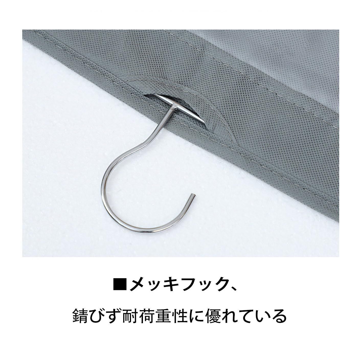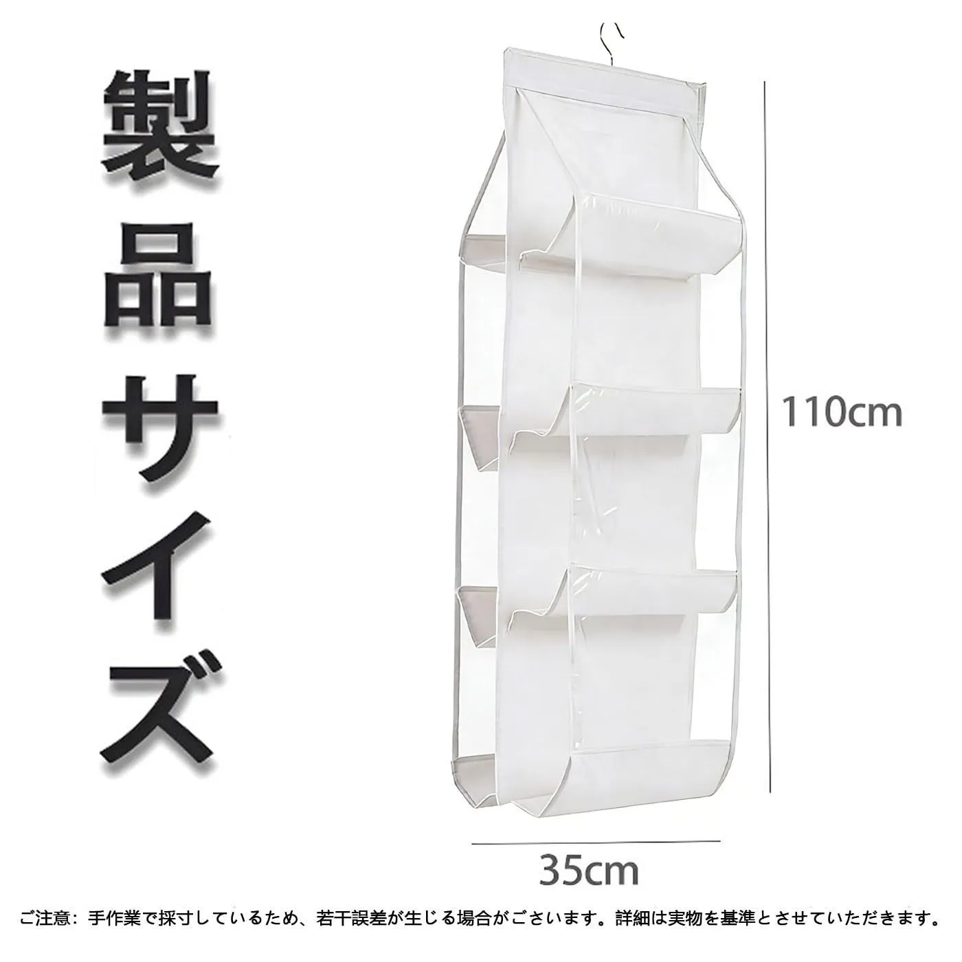【透明窓で使い勝手抜群】収納物が一目で確認できる透明窓を備えています。さらに、横からの出し入れが可能なため、必要なバッグをすぐに見つけることができ、非常に便利です。また、ハンガータイプの設計で、引っ掛けるだけで簡単に取り付けることができます。