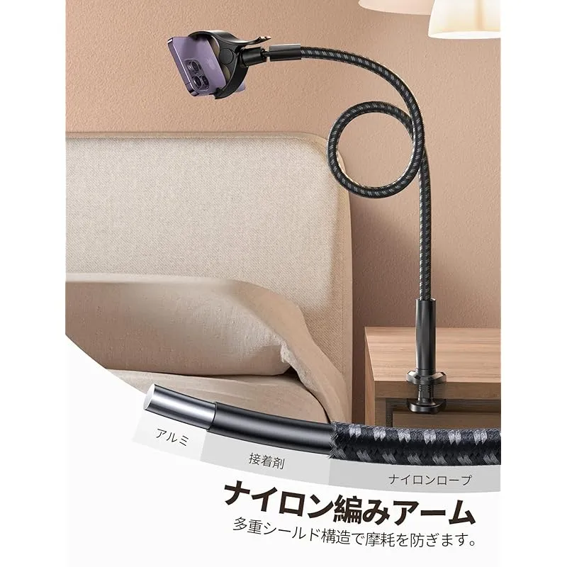【ナイロン編み製・オリジナル】Lamicall 360°寝ながらスマホアームスタンド ベット用スマホホルダー : 上下左右 360度回転 調整可能 厚いケースに対応 ナイロン 編みアーム フレキシブル 寝て見れる アームスタンド スマートフォン 横 縦 ごろ寝 寝ながら ベッド ベッドにつける 携帯 ケータイ すまほ 固定 ベッドサイド パイプ 自由自在 丈夫 ハンズフリー アイホン アイフォーン アイフォン アンドロイド, iPhone 17 Air 16e 16 15 14 plus pro promax 13 mini iPhone 12 mini Pro Max 11pro 11 XS XR X 8 plus 7 7plus 6s 6 6plus 5 5s se3 第三世代, Xperia 1 5 XZ2 XZ3 X Z4 Z5,Galaxy S24 S25 Ultra,Note 7 8 9 10+ 20,Z Fold 4 5 6,S5 edge S6 edge S7 edge,A8S A9S A70,W25 W26 Flip,huawei Mate Nova P70 Pro,Xiaomi android プロ マックス プラス ミニ に対応 黒 ブラック