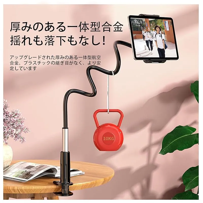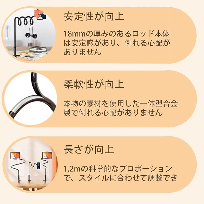 商品名:スマホスタンド 金属アーム 360°調整可能 クランプ式 ベッド用 机/デスク対応 EVA 滑り止め i-Phone/Android全機種対応 (3.5-10インチ) ブラック 1.2M