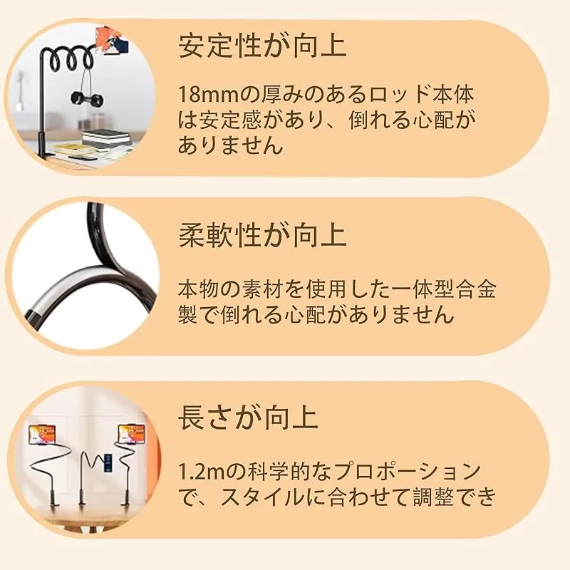 【快適なハンズフリー体験】両手を解放し、寝ながら・料理しながらのスマホ利用が可能。首や手の疲れを軽減し、動画視聴やオンライン授業に最適なアイテムです。