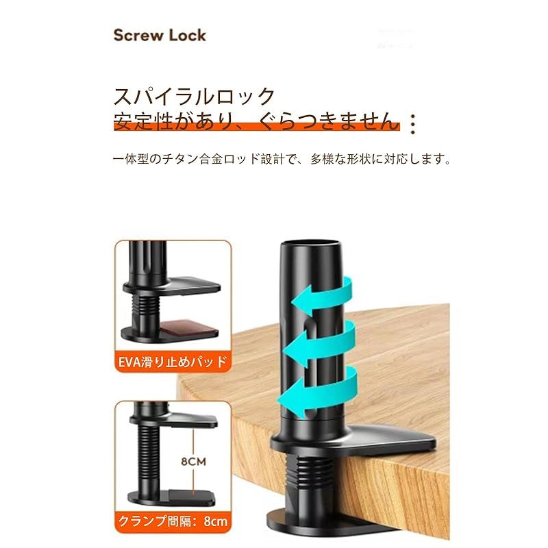【ツール不要・簡単設置】螺旋式クランプで手回しのみで設置完了。工具不要でベッドサイドやオフィスデスクにすぐ取り付け可能。充電ケーブル用スペース確保で便利です。