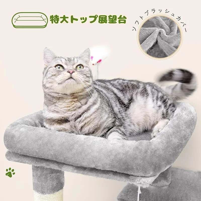 【広い展望台】特大のトップパーチは、猫が家全体を見渡すのに最適な高い場所を提供し、自分の領域を調査する楽しみを楽しめます。