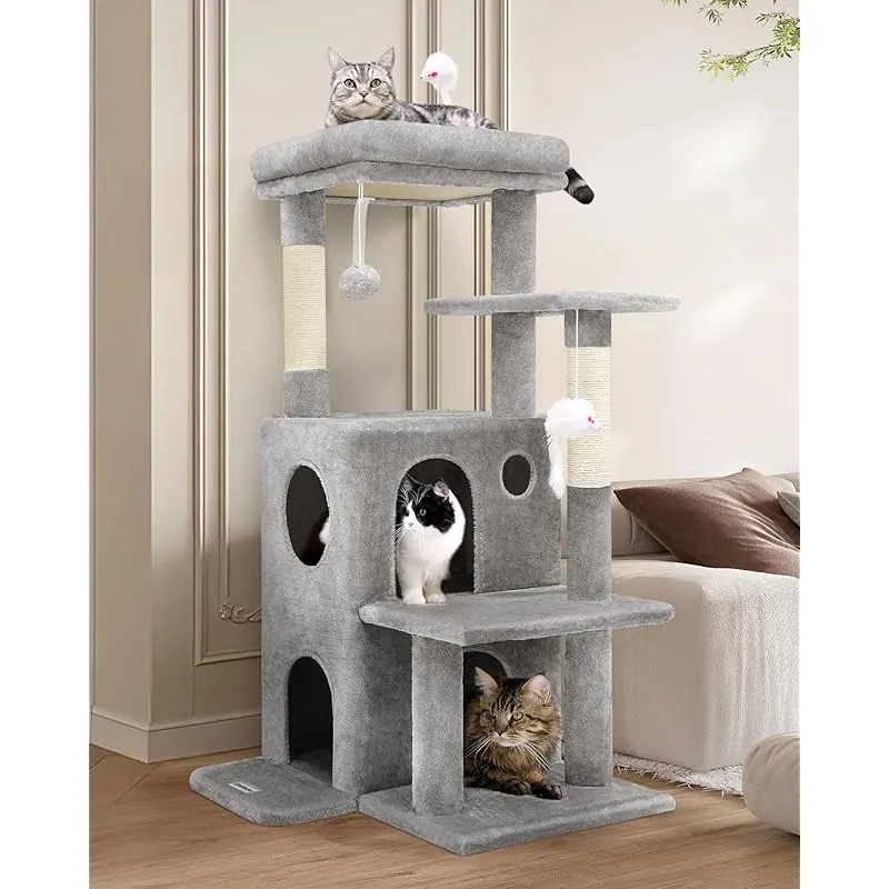 【適切な高さの大型キャットタワー】高さ128cmで、ほとんどの年齢とサイズの猫に適しており、活動と休息のための十分なスペースを提供します。