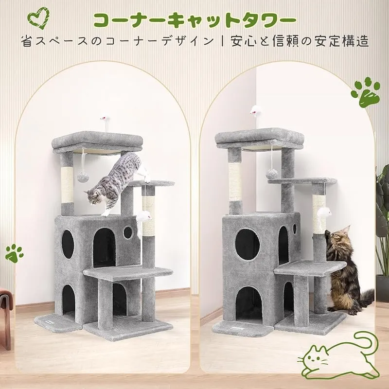 このキャットタワーは、あなたの猫が遊び、休息、探索するための理想的な場所を提供し、家庭内での彼らの幸福と活動性を向上させます。