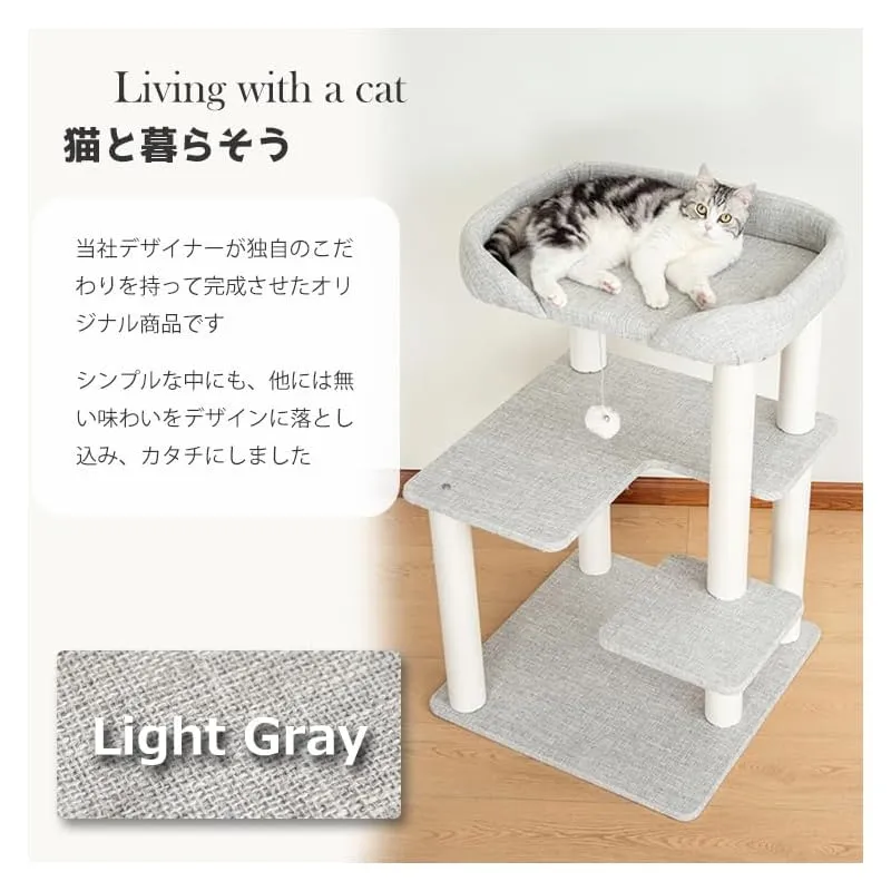 商品名:LULUCAT キャットタワー 据え置き 高さ93cm おしゃれ 宇宙船 多頭飼い コンパクト インテリア性 低め 低い 麻生地張り スリム コーナー 省スペース ライトグレー クリアボウル 成猫 子猫 キャットツリー 猫タワー 狭い部屋向け 安定感 シンプル