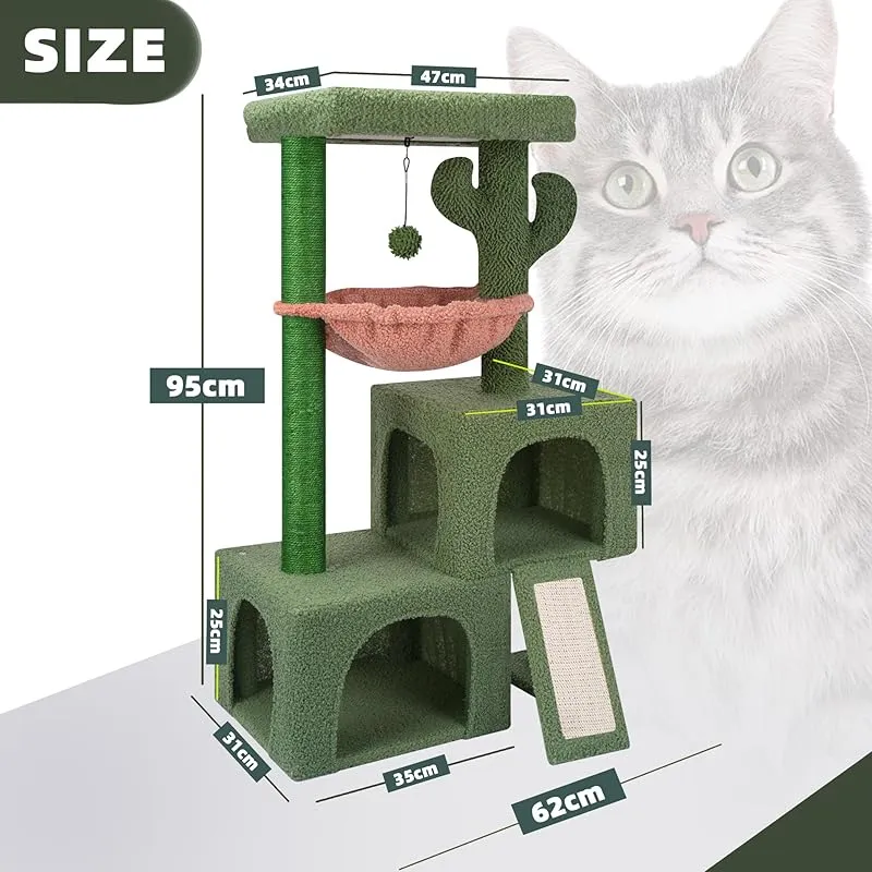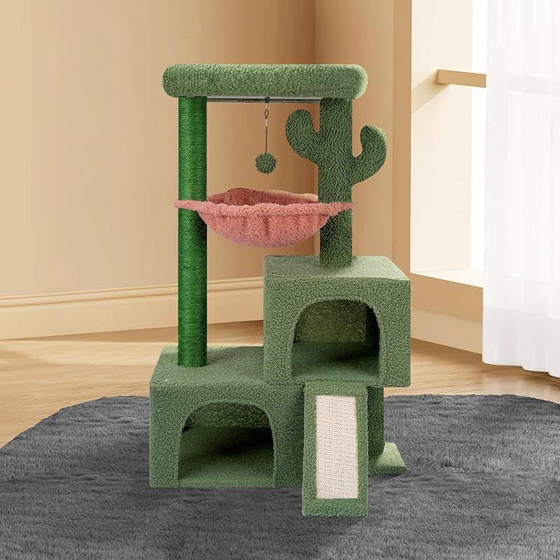 商品名:Roypet キャットタワー 猫タワー 据え置き ハンモック 隠れ家 猫ハウス 省スペース 爪とぎ 麻縄巻き 安定 95CM高さ おもちゃつき (グリーン)