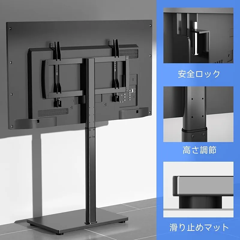 【工事なし】付必要な部品が全部揃っていて、日本語取扱説明書も付属され、壁に穴を開ける必要はありません。テレビスタンドを簡単に取り付けられます。※ナット・ネジ類などの備品は備えていますが、万が一必要な部品が不足していた場合はカスタマーサービスにご連絡くださいようお願いいたいします。