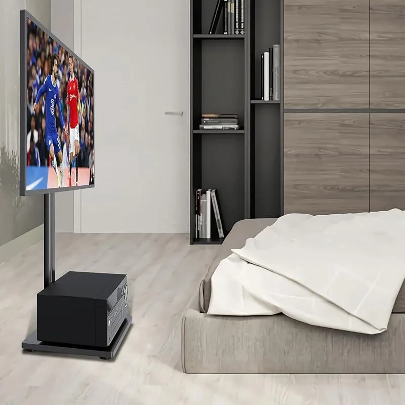 【省スペース】壁寄せスタンドタイプで壁掛けのように、すっきりとテレビを配置ができます。デッドスペースを減らしてお部屋を有効活用でき、足元も広くなります。お部屋の角にも自由に配置できる使いやすさ。寝室やリビングルーム、ダイニングルーム、アパートなど色んな場合で使用できます。