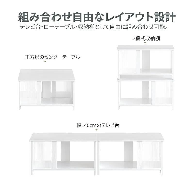この1台で「ロングテレビボード」「2段ラック」「センターテーブル」の3役をこなすマルチ家具。横幅140cmで最大75インチの大型テレビにも対応し、空間を有効活用できます。付属のLEDライトは7色×20モード、映画鑑賞やゲームタイムにぴったりの雰囲気作りも思いのまま。収納は広々2カ所設けられ、AV機器から雑貨までスッキリと整理可能。 素材には耐久性に優れたP2パーティクルボードと透明感のあるアクリルパネルを採用。安定感があり、長く使えます。 組立説明書と工具も付属しているので、初心者でも迷わず組立て可能。暮らしに合わせてレイアウトを変えられる、おしゃれで実用的な家具。1年付きで、安心してご使用いただけます。