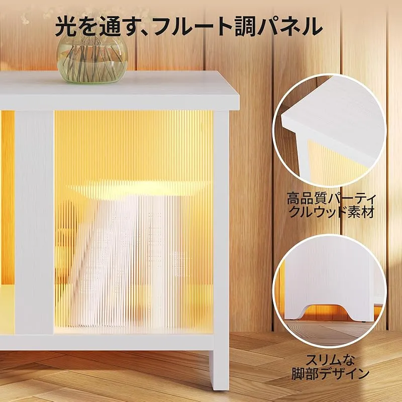 商品名:Pinmoco テレビ台 140幅テレビボード 32/40/50/55型対応tv台 木目調テレビラック 白 大容量収納棚 LEDライト ローボード 木製 異素材 モダン 組み立て簡単(140×35×55.12cm、ホワイト)