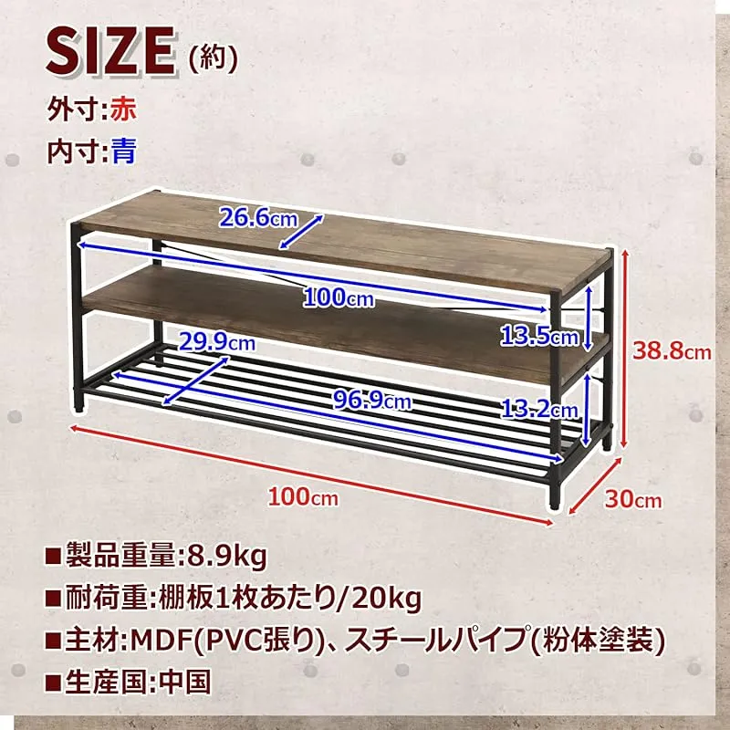 商品サイズ(約):幅100×奥行30×高さ38.8cm