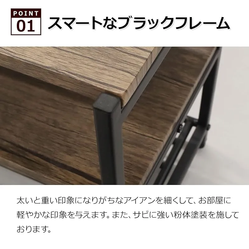 主材:フレーム・底板/スチール(粉体塗装)、天板・棚板/合成樹脂化粧繊維板(PVC)
