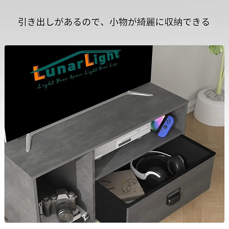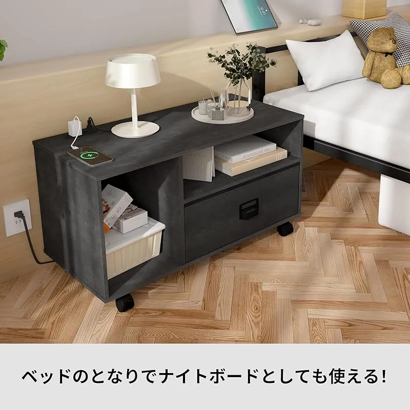 【コンセント・引き出し付き】日本ブランドのコンセント付きで、テレビや電気製品を安全に使用できます。布製の引き出しも1個付いており、収納力も抜群です。