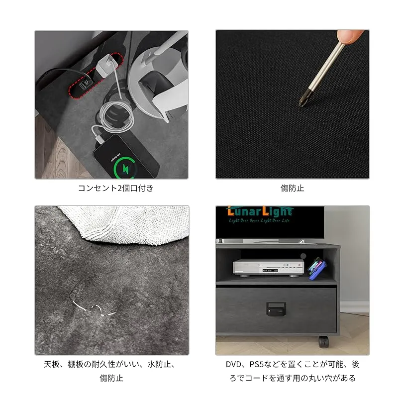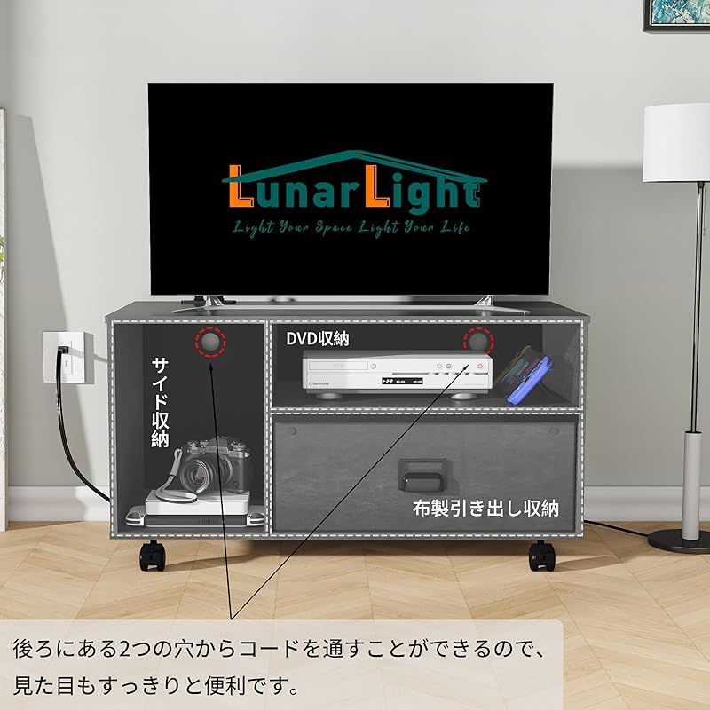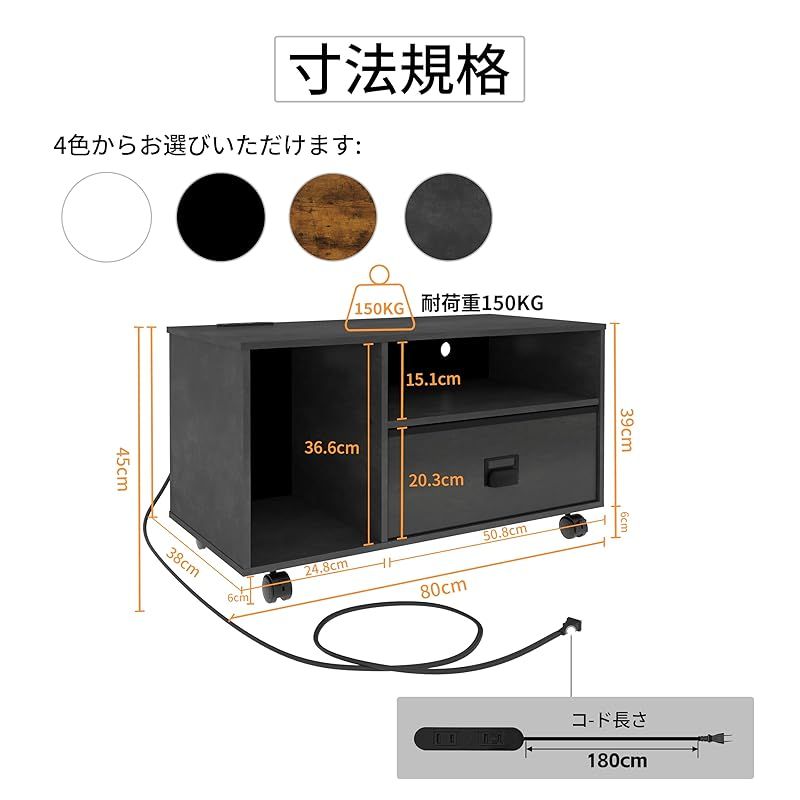 商品名:LunarLight テレビ台 TVラック テレビボード ローボード チェスト コンセント付き 引き出し付き 多機能収納ボックス 幅80奥行38高さ45cm 32型42型テレビ適合 収納 カラーボックス オープンラック 組立簡単 耐震転倒防止 耐荷重150kg