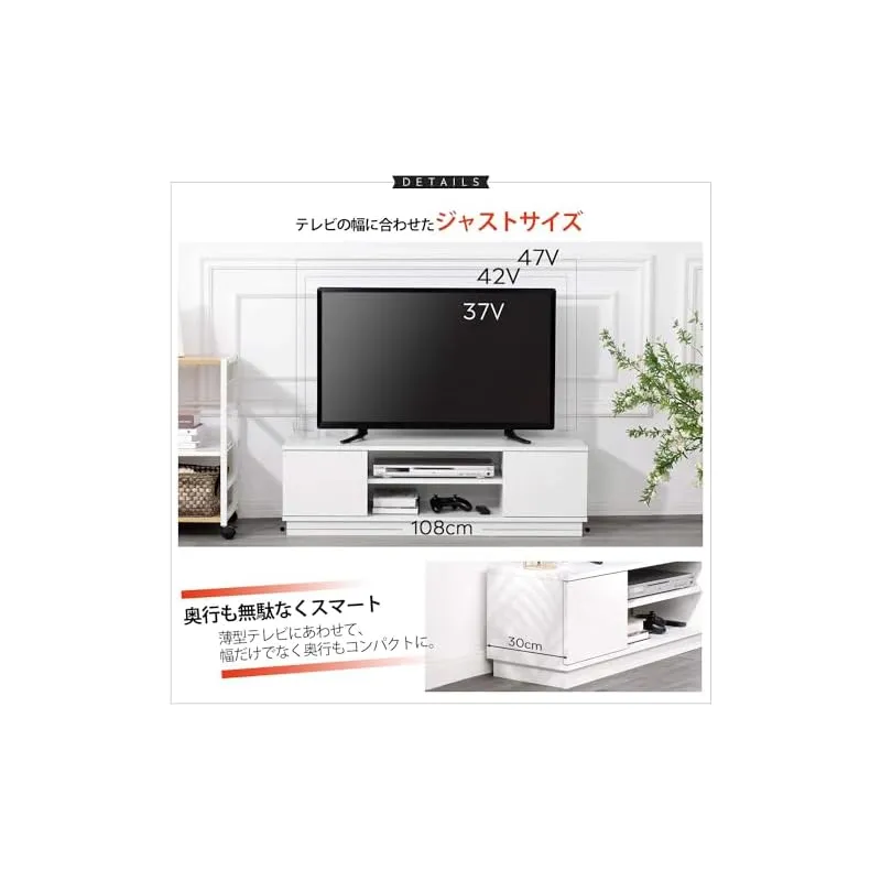 「ジャストサイズ設計」テレビの幅に合わせたジャストサイズ設計なので、圧迫感を与えず、一人暮らしやワンルームにも適応します。奥行も無駄なくスマートで、飾る部屋を広く見えます。