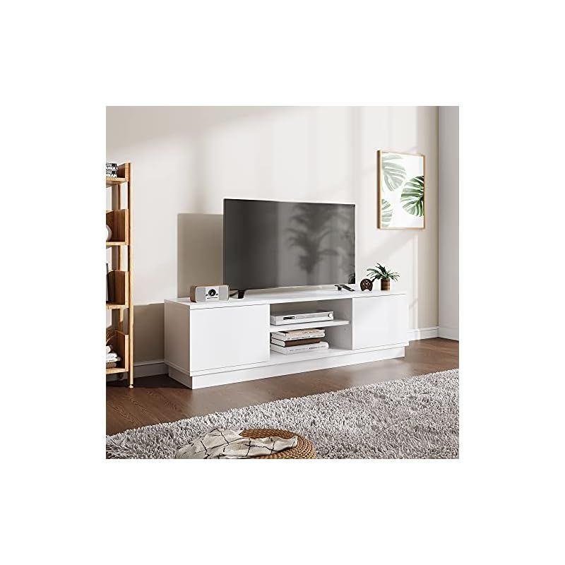商品名:WLIVE テレビ台 ローボード テレビボード 収納 ロータイプ 幅110 高さ33cm tv台 tvボード 43インチ対応 24-47型対応 扉付き 大容量収納スペース 白い ホワイト